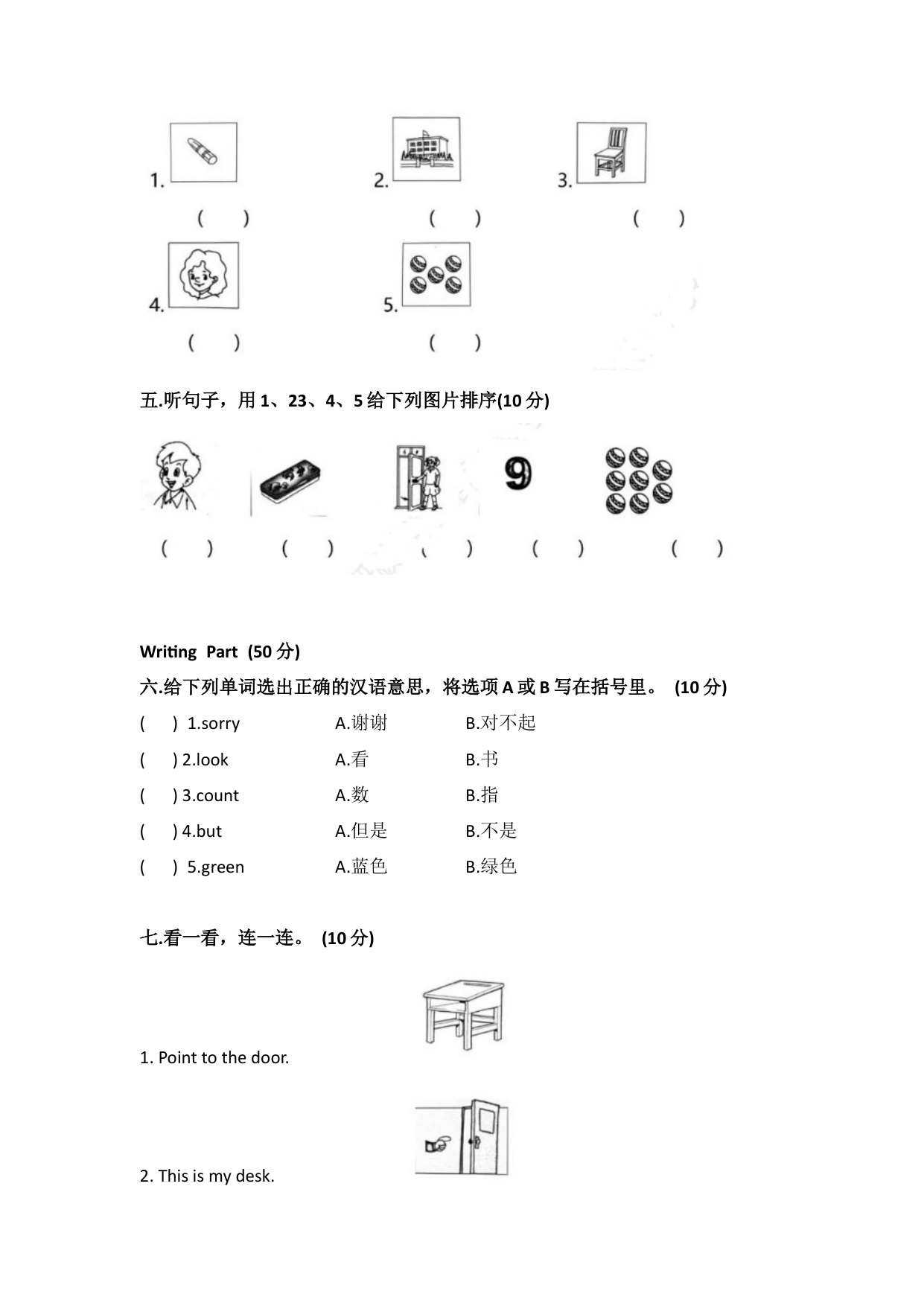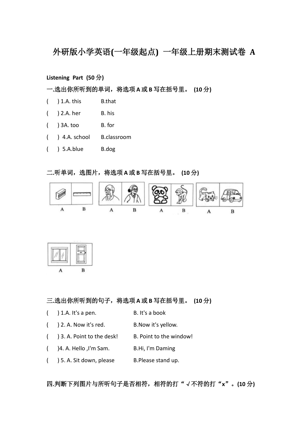 外研社版小学英语(一年级起点)一年级上册期末测试卷A含听力_dyKdG
