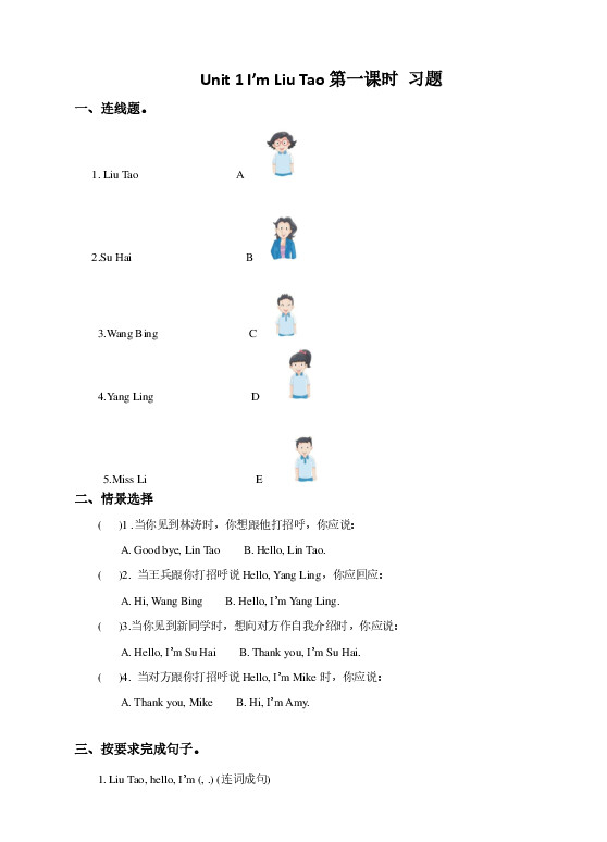 下一篇:Unit 1 Im Liu Tao (2) 习题及答案