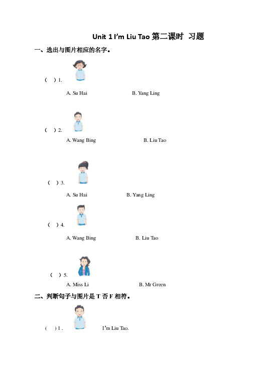 上一篇:Unit 1 Im Liu Tao (1) 习题及答案