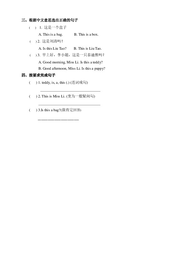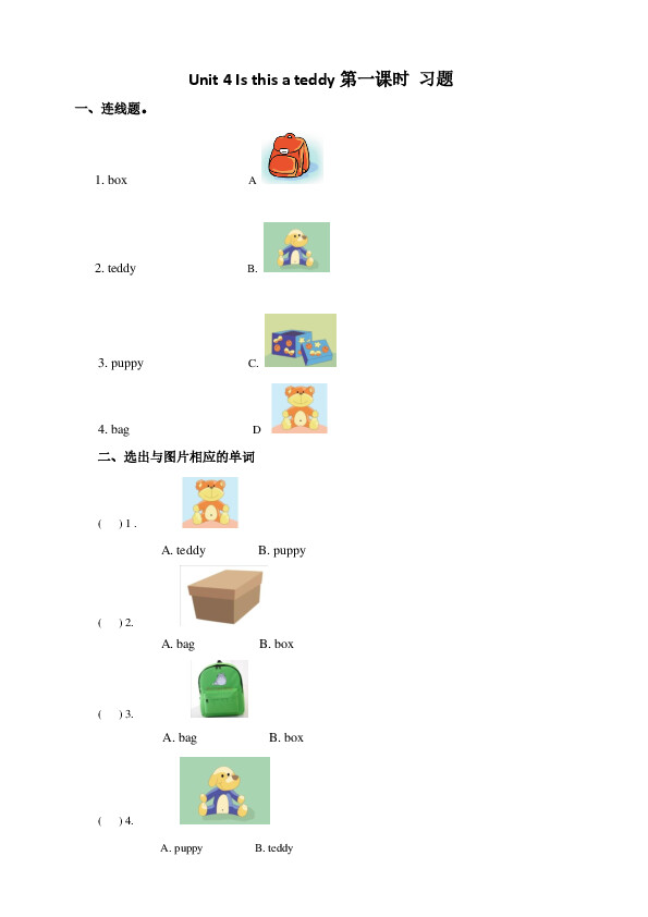 下一篇:Unit 4 Is this a teddy (2) 习题及答案