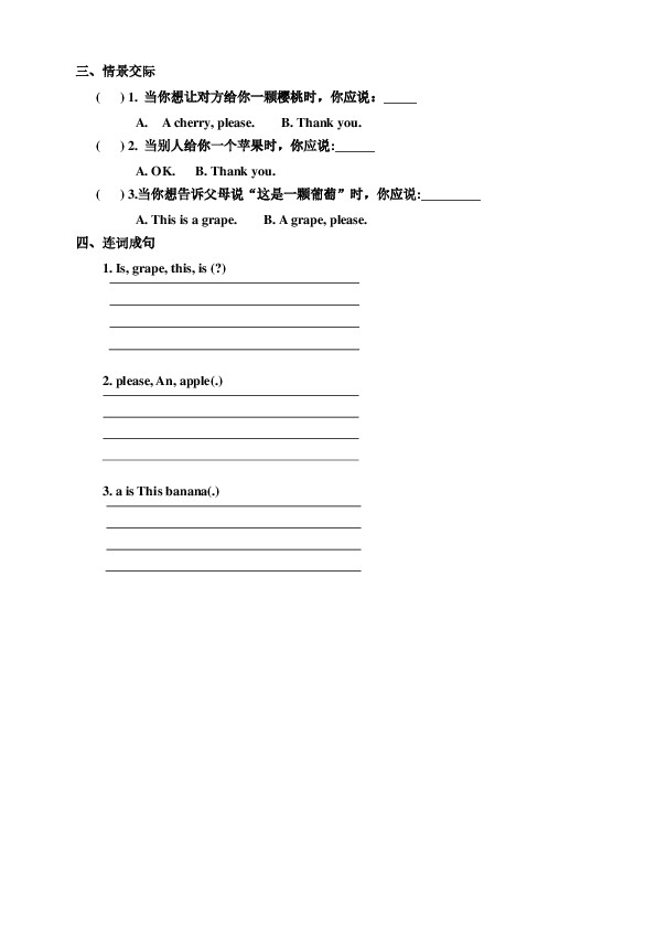 下一篇:Unit 5 A cherry, please (2) 习题及答案