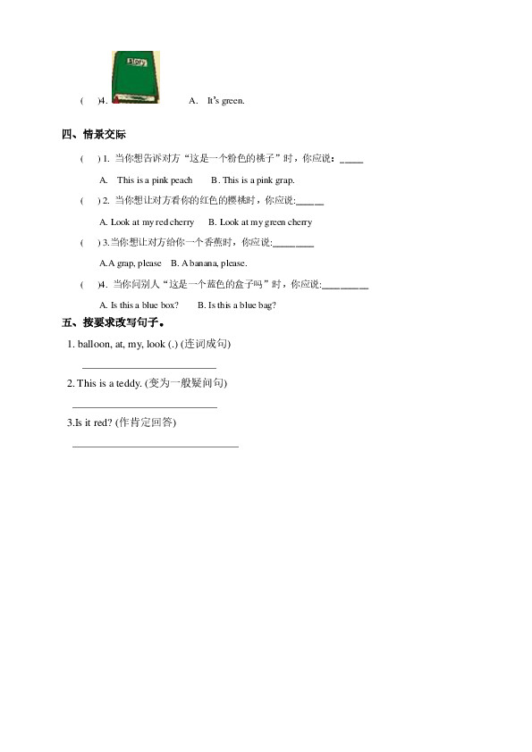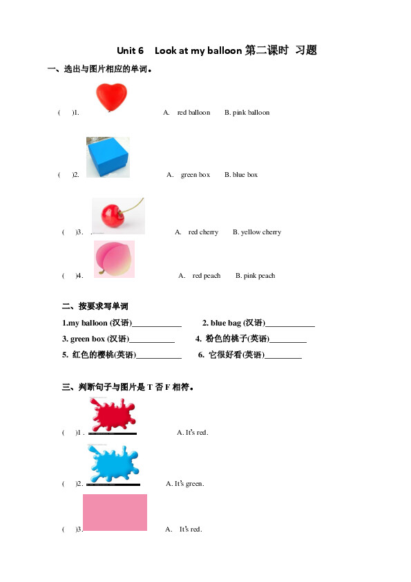 上一篇:Unit 6 Look at my balloon (1) 习题及答案