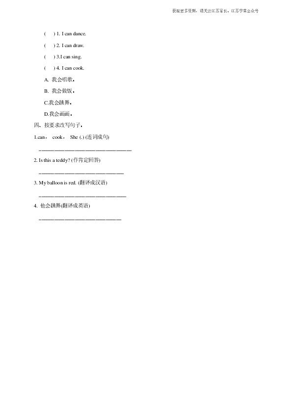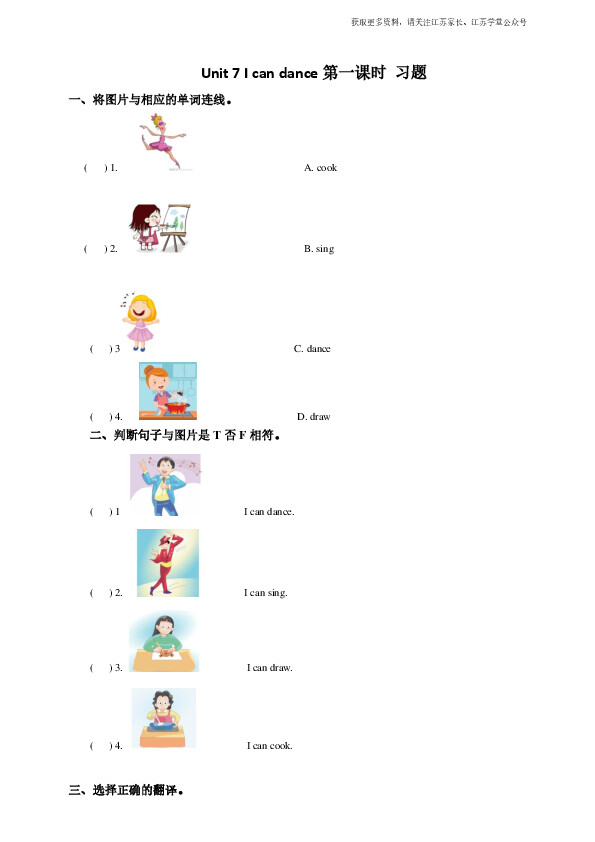 下一篇:Unit 7 I can dance (2) 习题及答案
