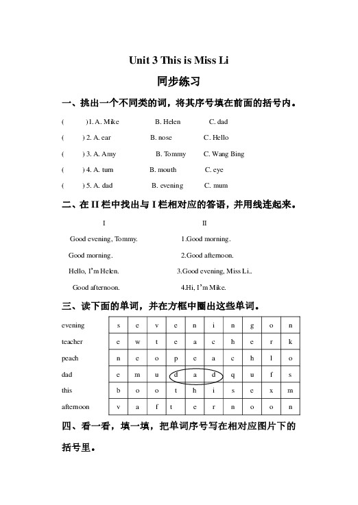 上一篇:苏教译林版小学英语一上 Unit 2 Good Morning 同步练习A卷及答案