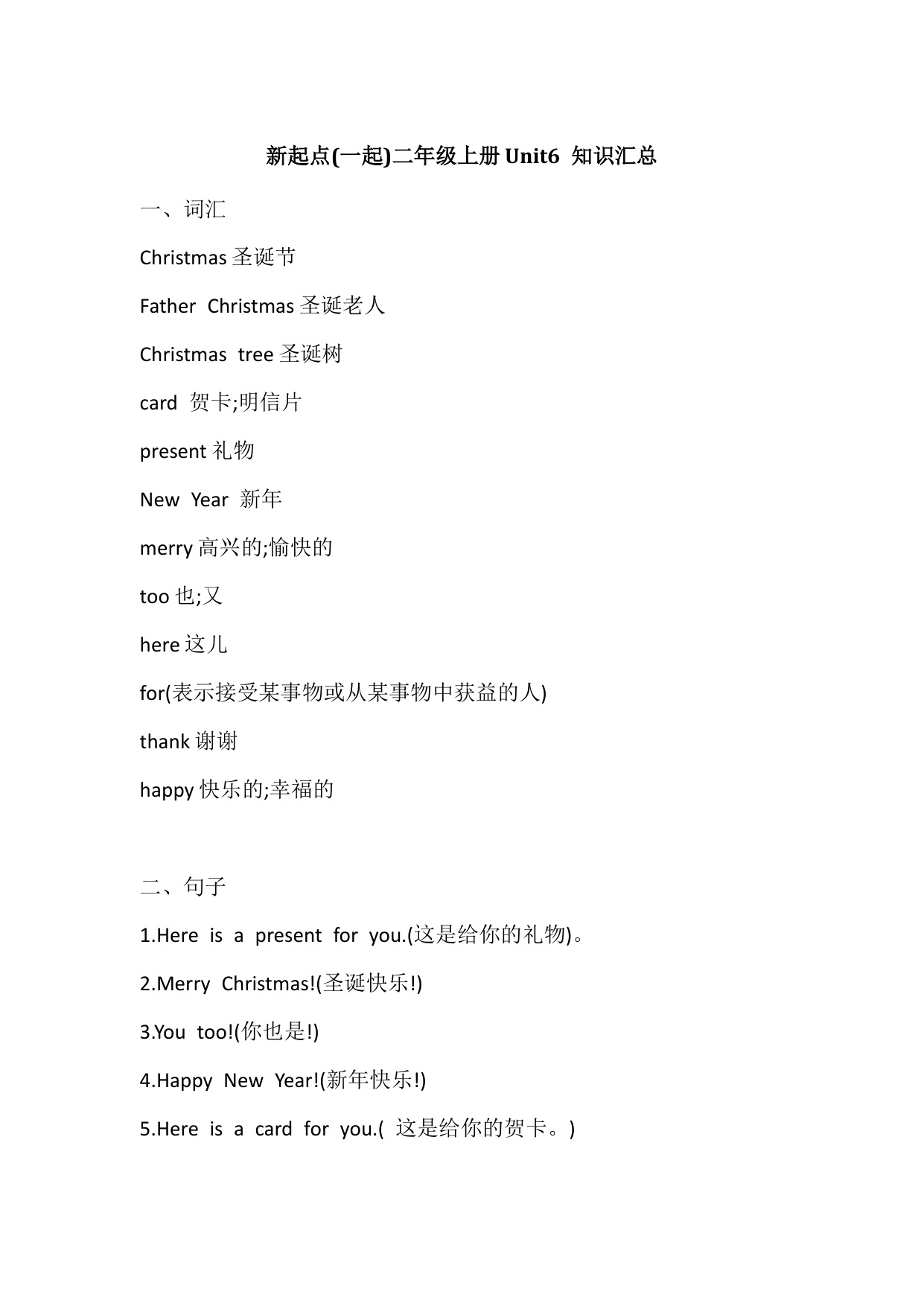 上一篇:人教新起点英语二年级上册Unit5知识点汇总