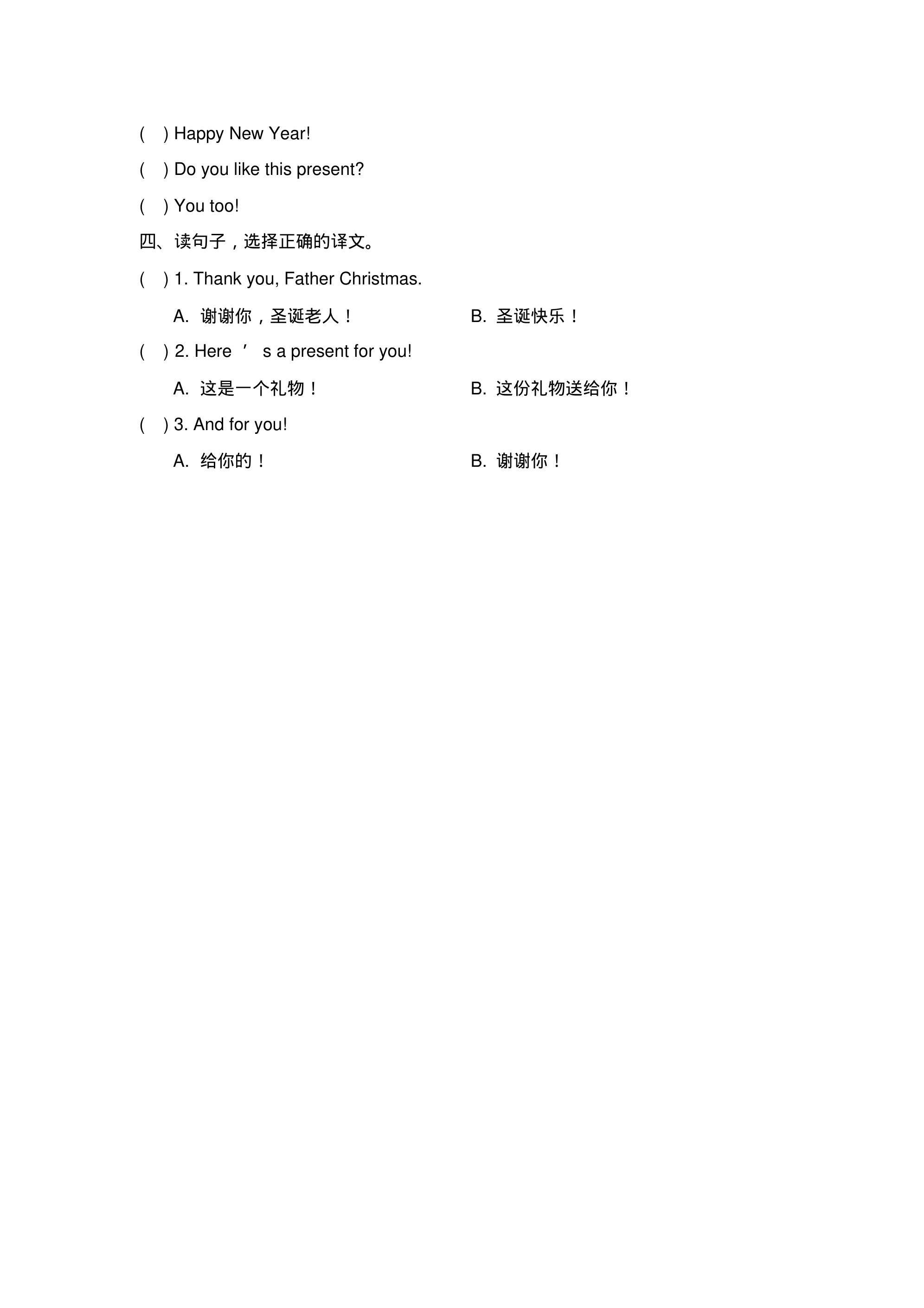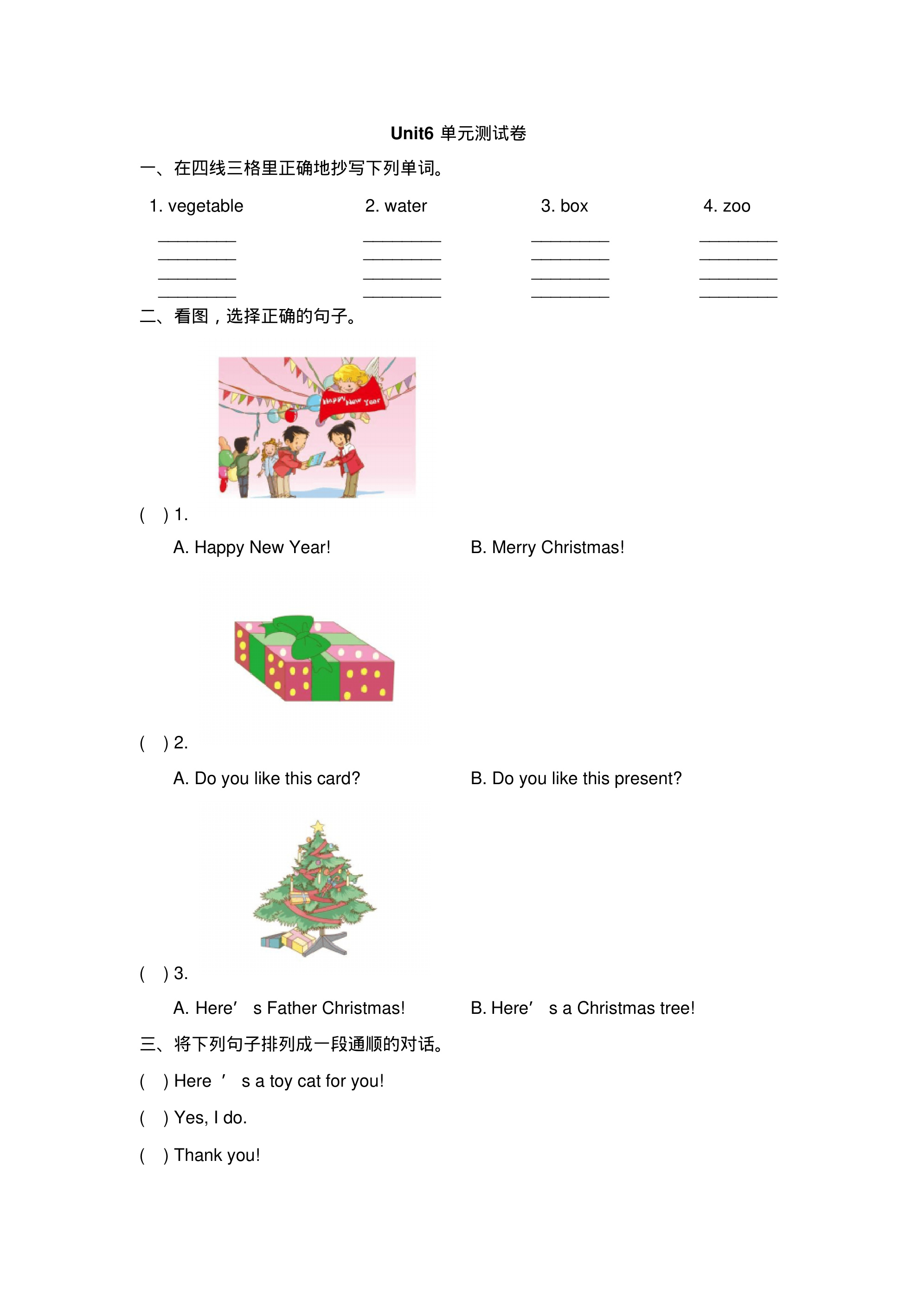 人教版(新起点)英语二年级上Unit6《HappyHolidays》单元测试卷