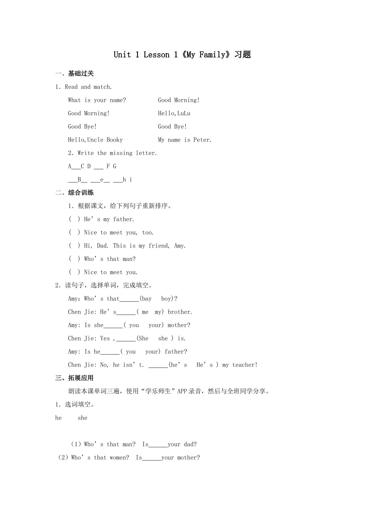 下一篇:人教新起点二年级上册MyFamily习题第2课时