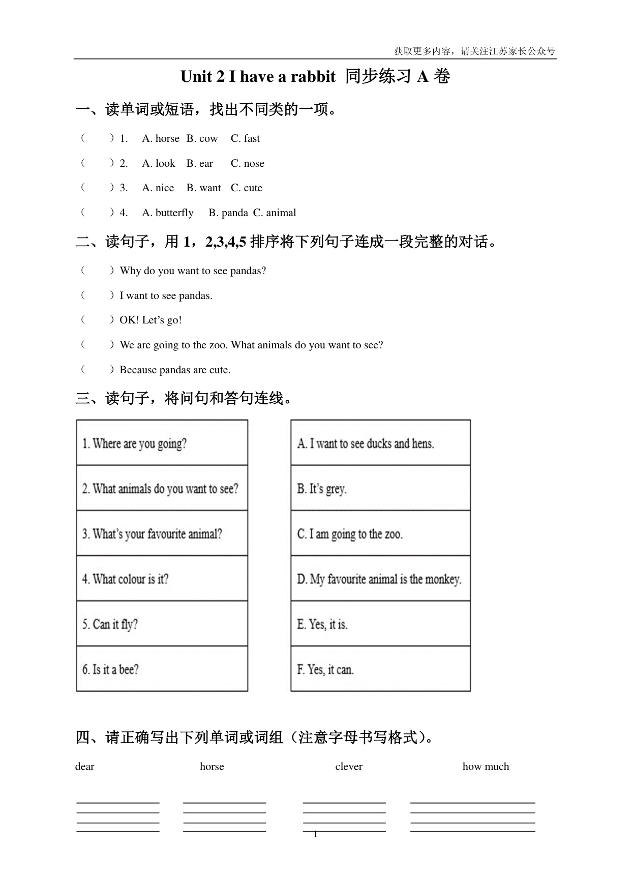 下一篇:苏教译林版小学英语二上 Unit 3 It has a short tail 同步练习A卷