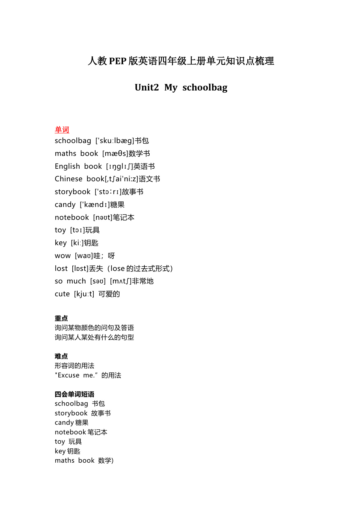 上一篇:人教PEP版英语四年级上册Unit1单元知识点梳理