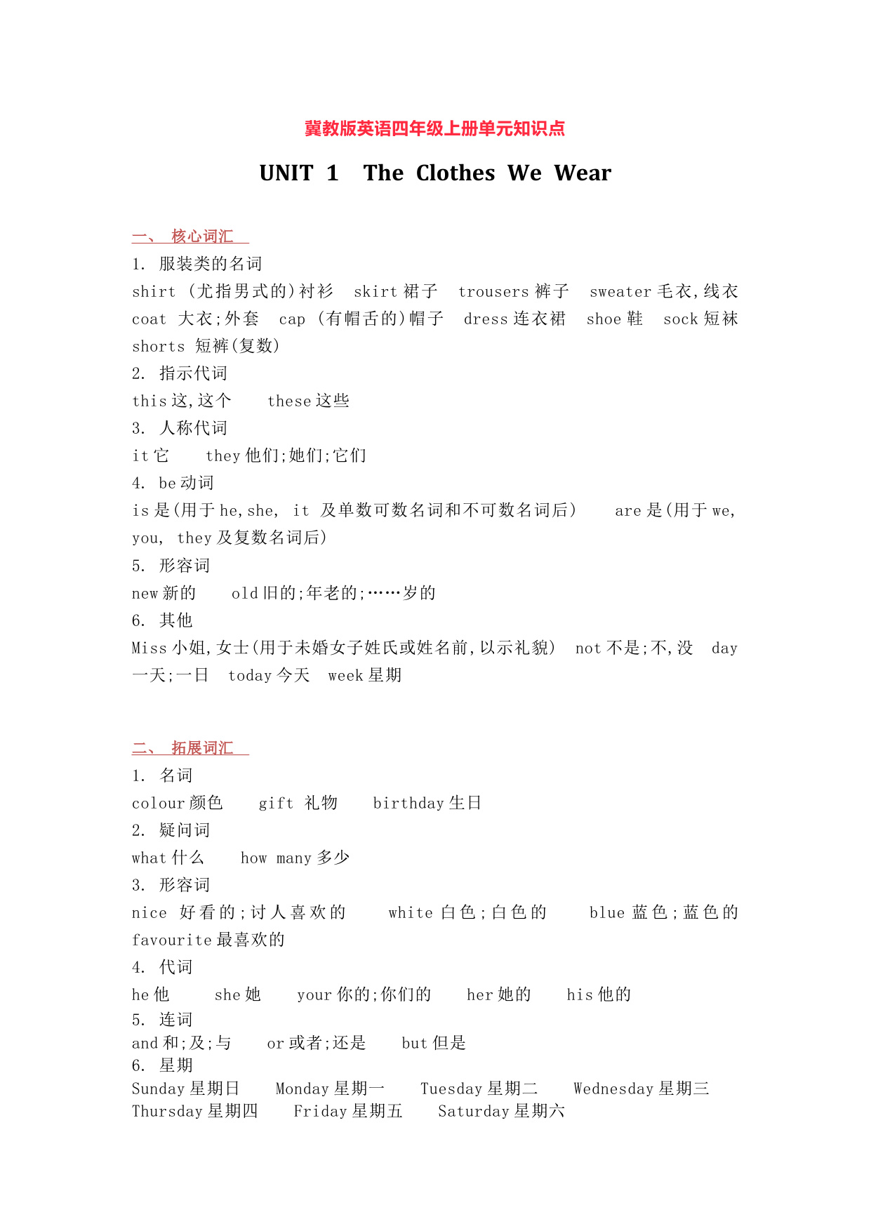 下一篇:冀教版英语四年级上册Unit2单元知识点