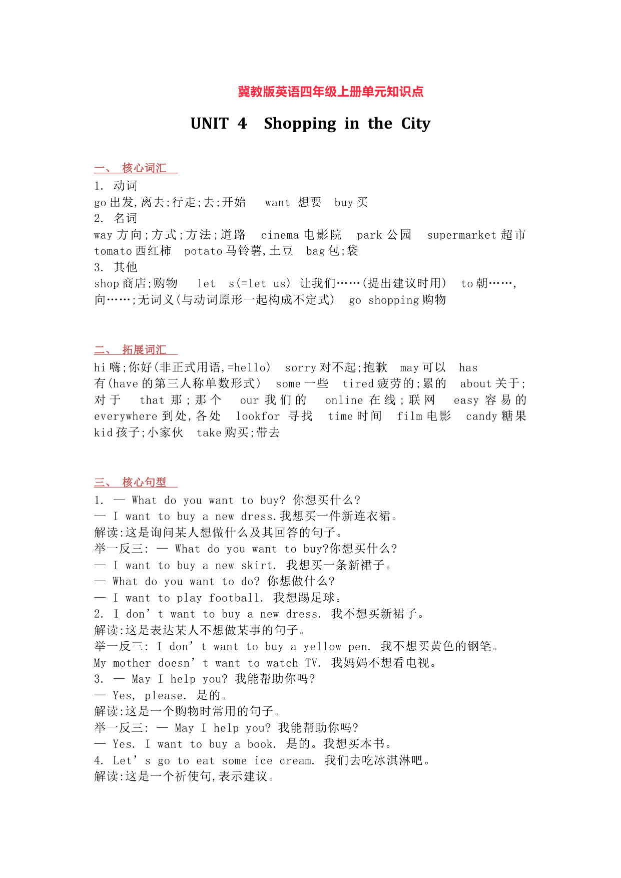 上一篇:冀教版英语四年级上册Unit3单元知识点