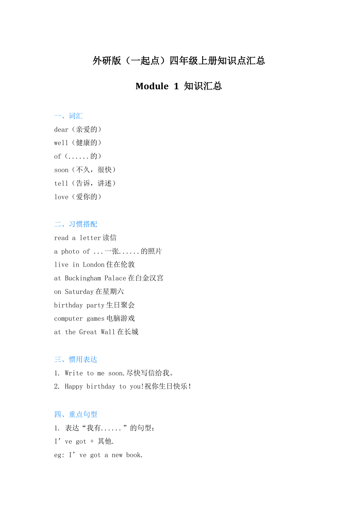 下一篇:外研版(一起点)英语四年级上册Module2知识点