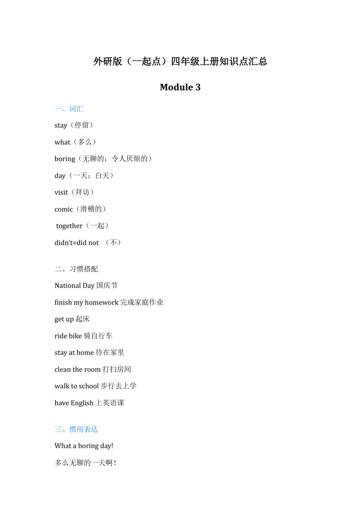 上一篇:外研版(一起点)英语四年级上册Module2知识点
