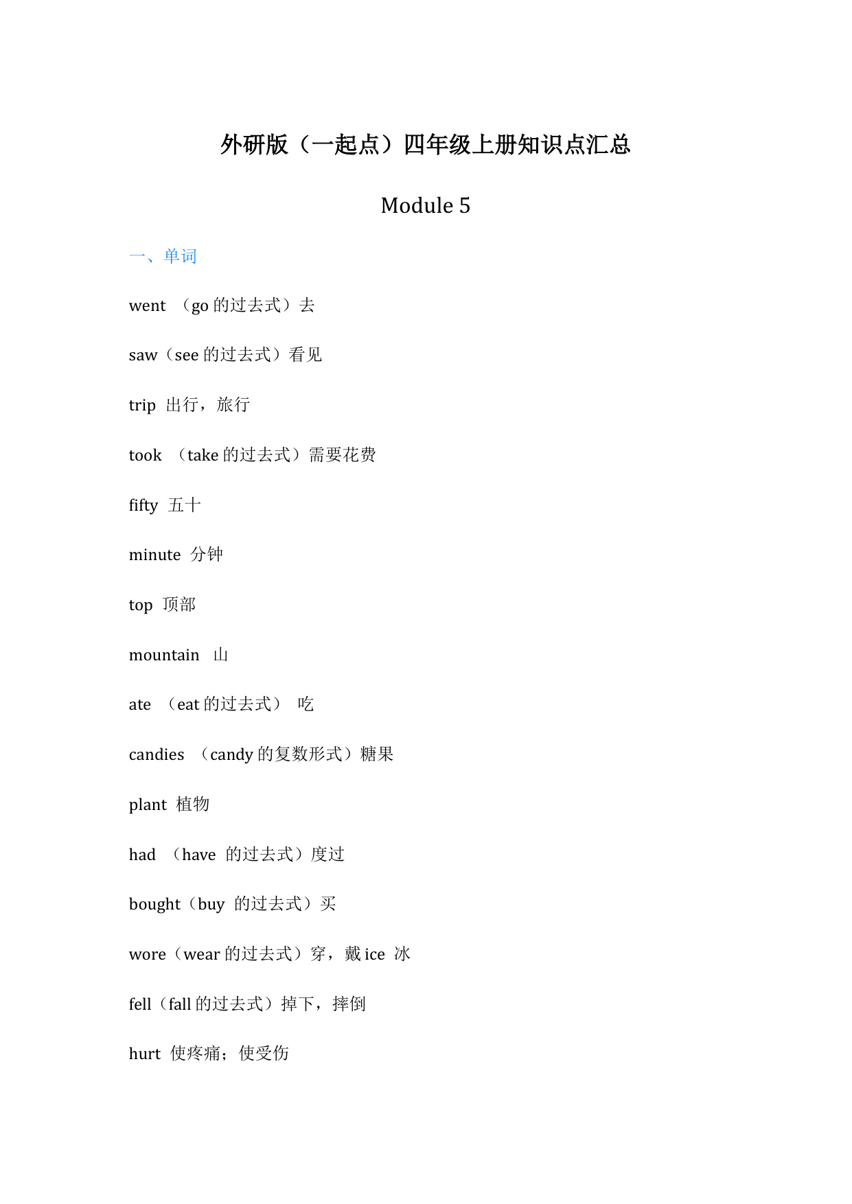 上一篇:外研版(一起点)英语四年级上册Module4知识点