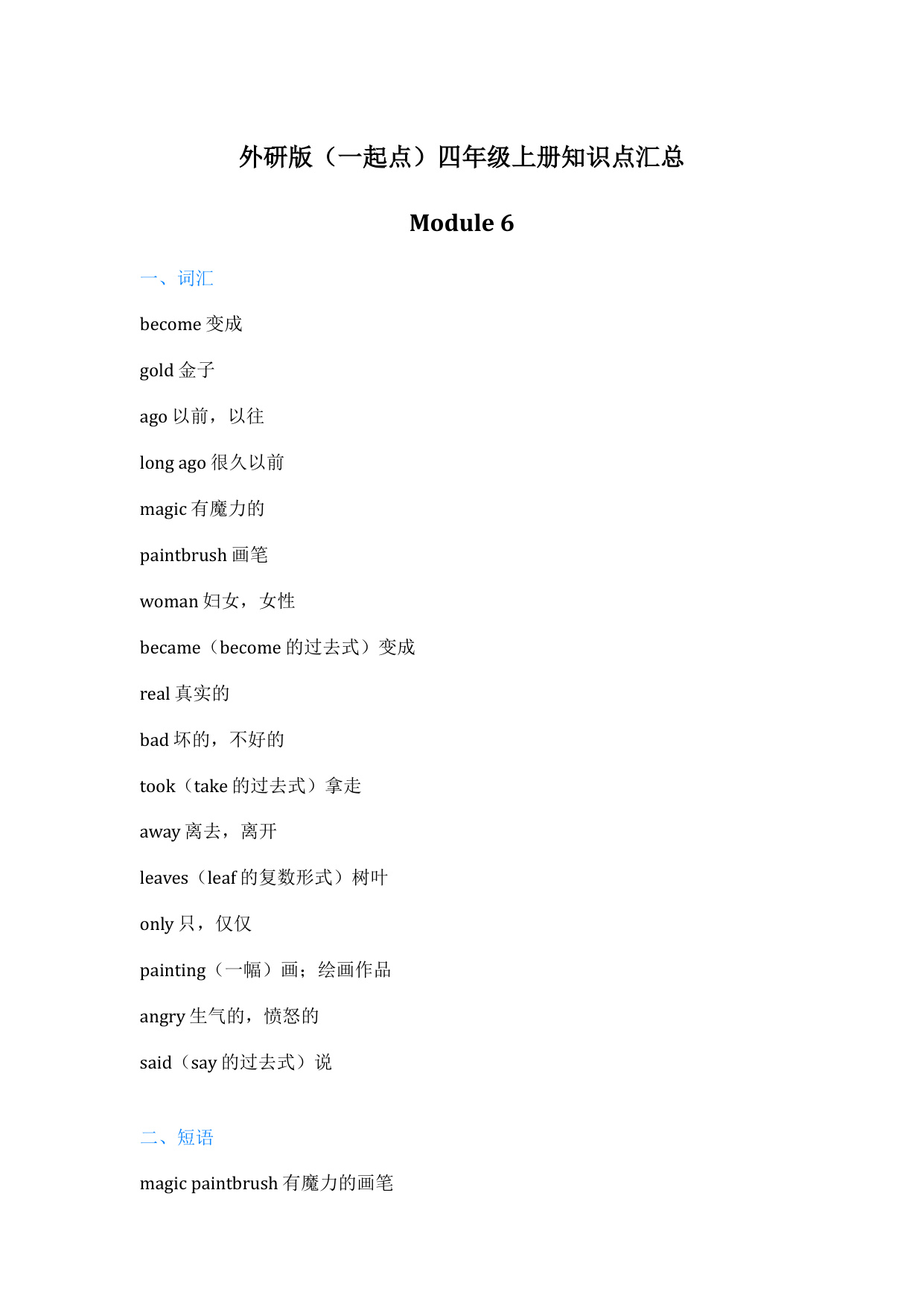 上一篇:外研版(一起点)英语四年级上册Module5知识点