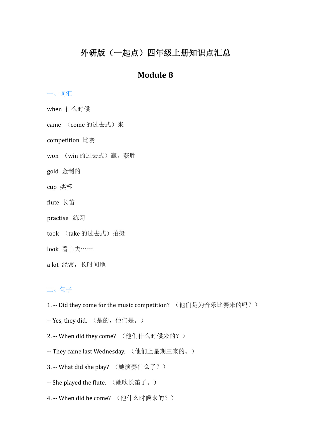 下一篇:外研版(一起点)英语四年级上册Module9知识点