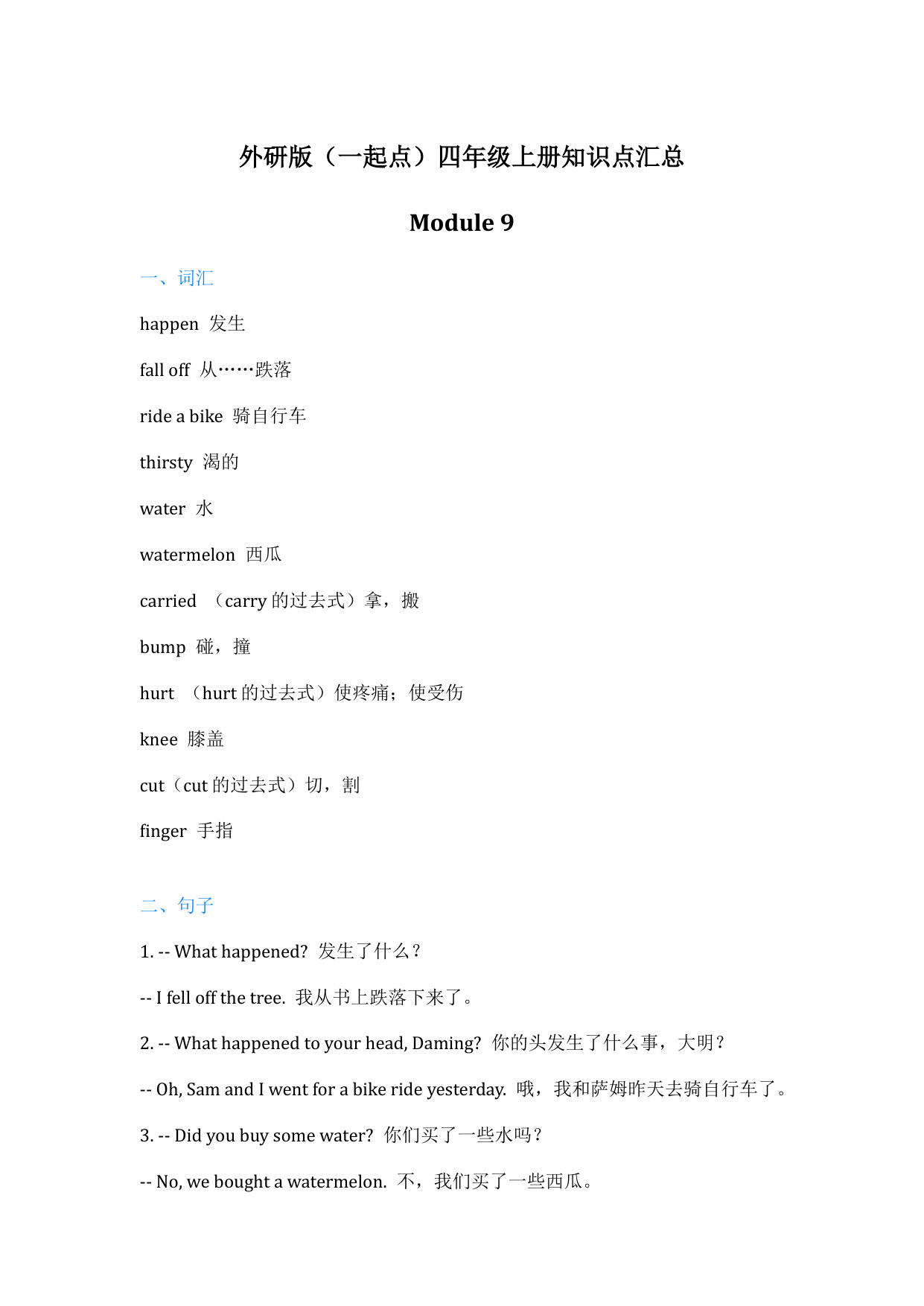 外研版(一起点)英语四年级上册Module9知识点 资料为Word格式,请下载后使用相应软件打开。