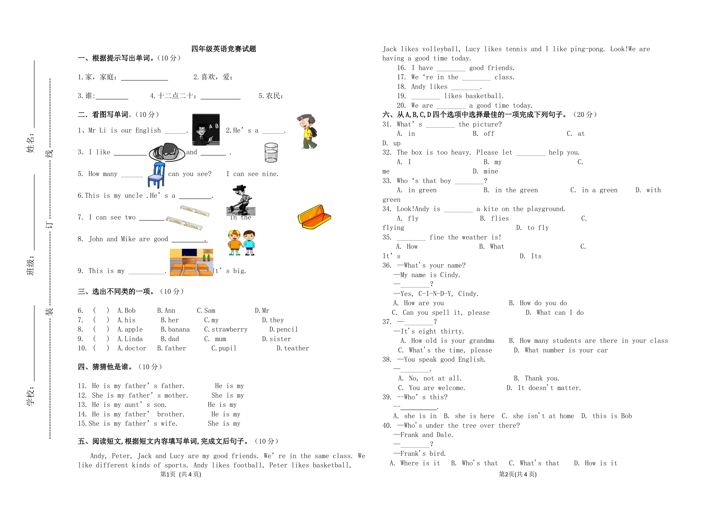 下一篇:人教PEP版英语四年级上册Unit1单元同步练习
