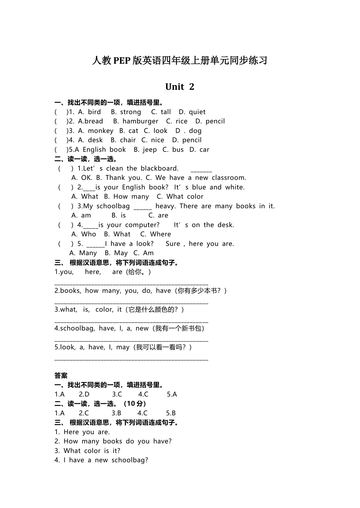 下一篇:人教PEP版英语四年级上册Unit3单元同步练习