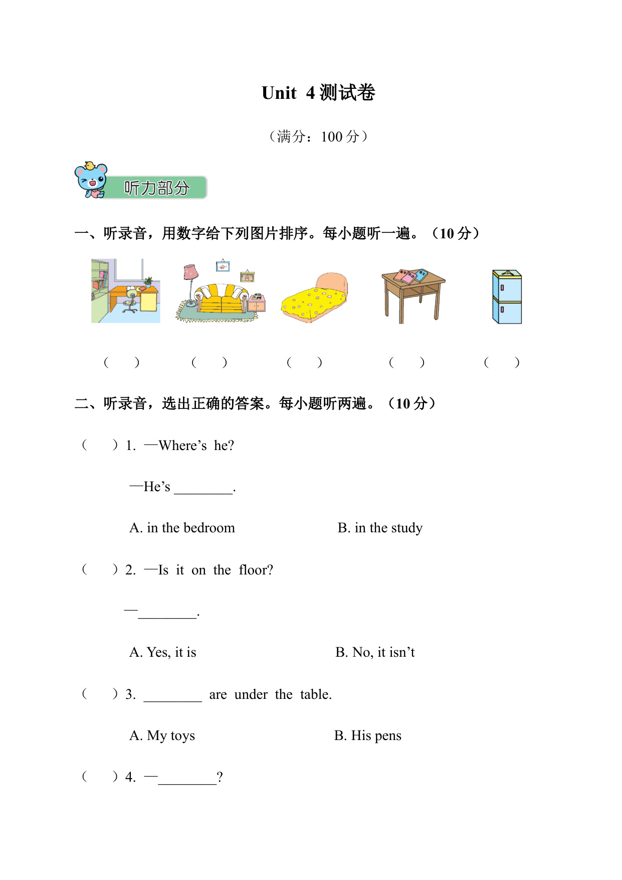 上一篇:人教pep版英语四上unit3测试卷含听力