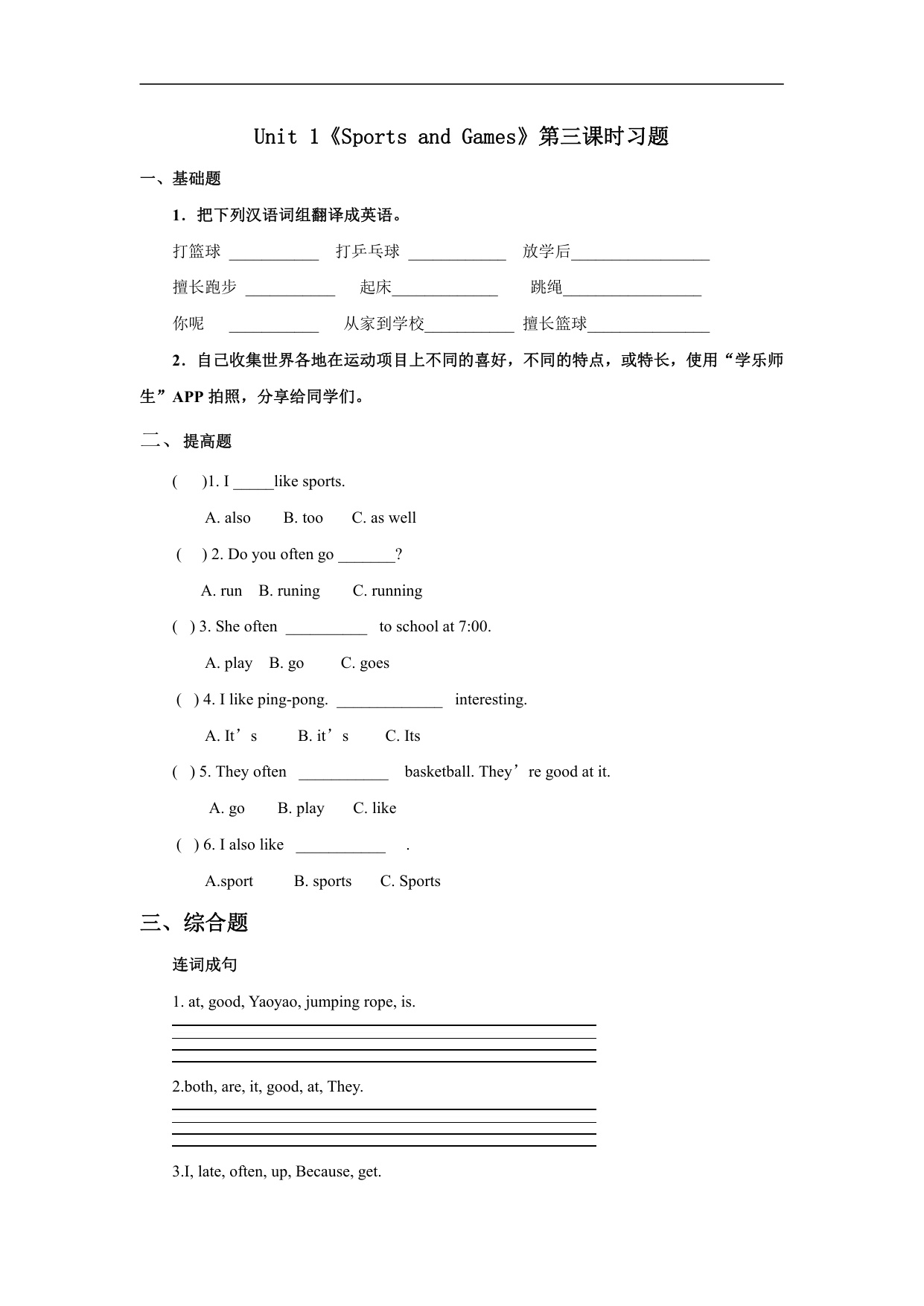 上一篇:人教新起点四年级上册Unit1 习题 第2课时