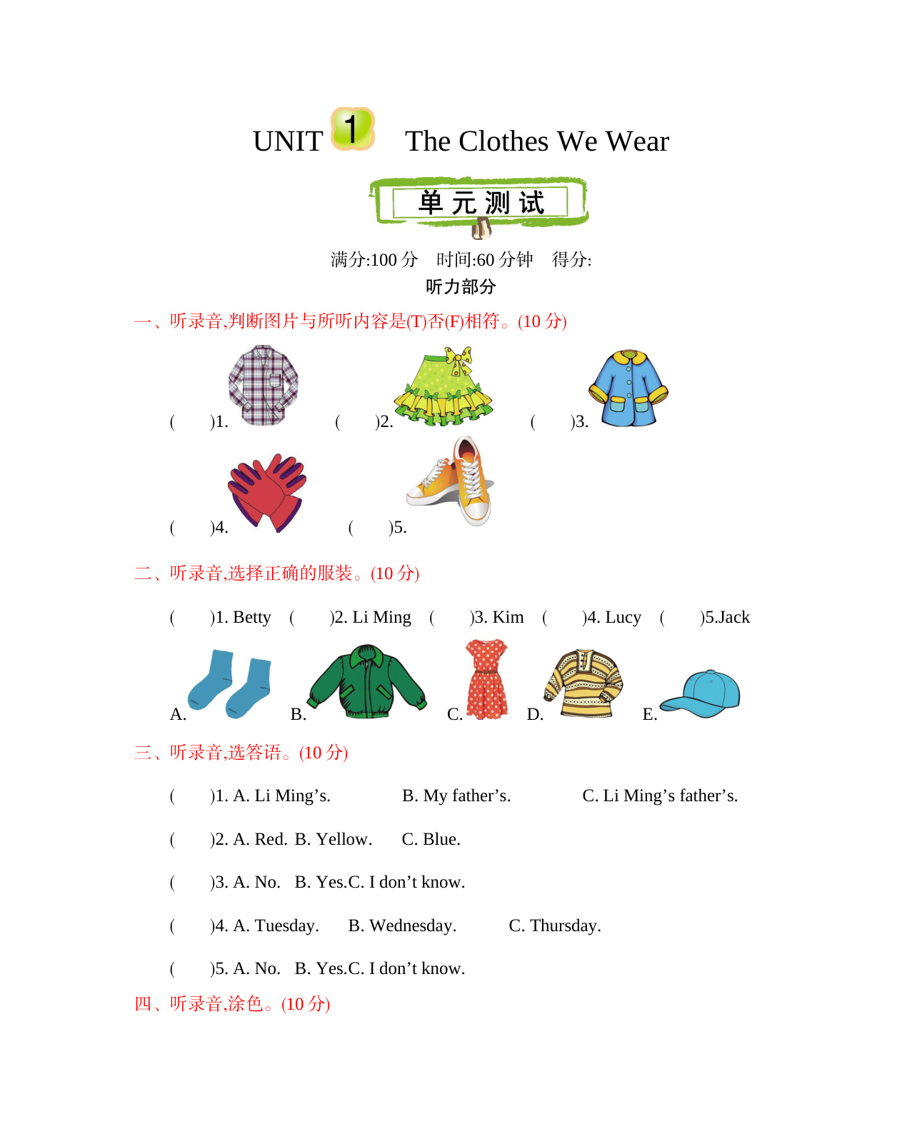 下一篇:冀教版四上 Unit 2 单元测试-含听力