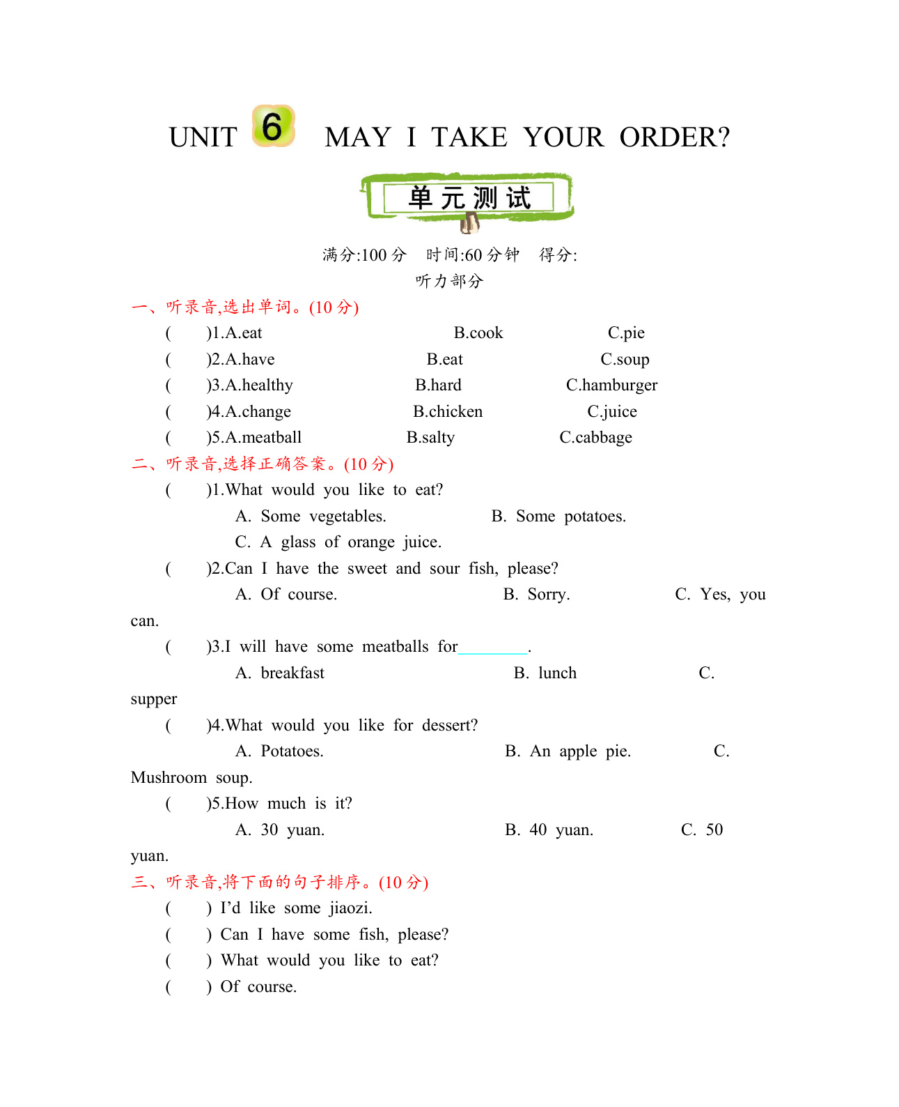 上一篇:北京课改四上 Unit 5 测试卷含听力