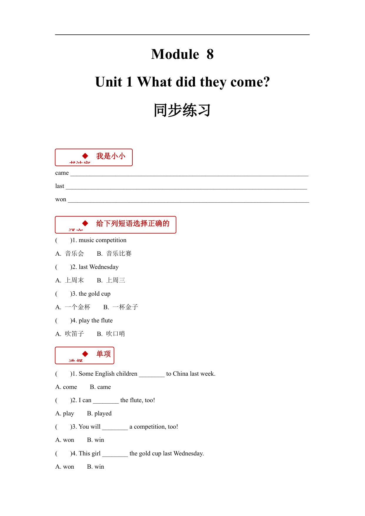 上一篇:【同步练习】Module 7 Unit 2(外研英语一起点四上)