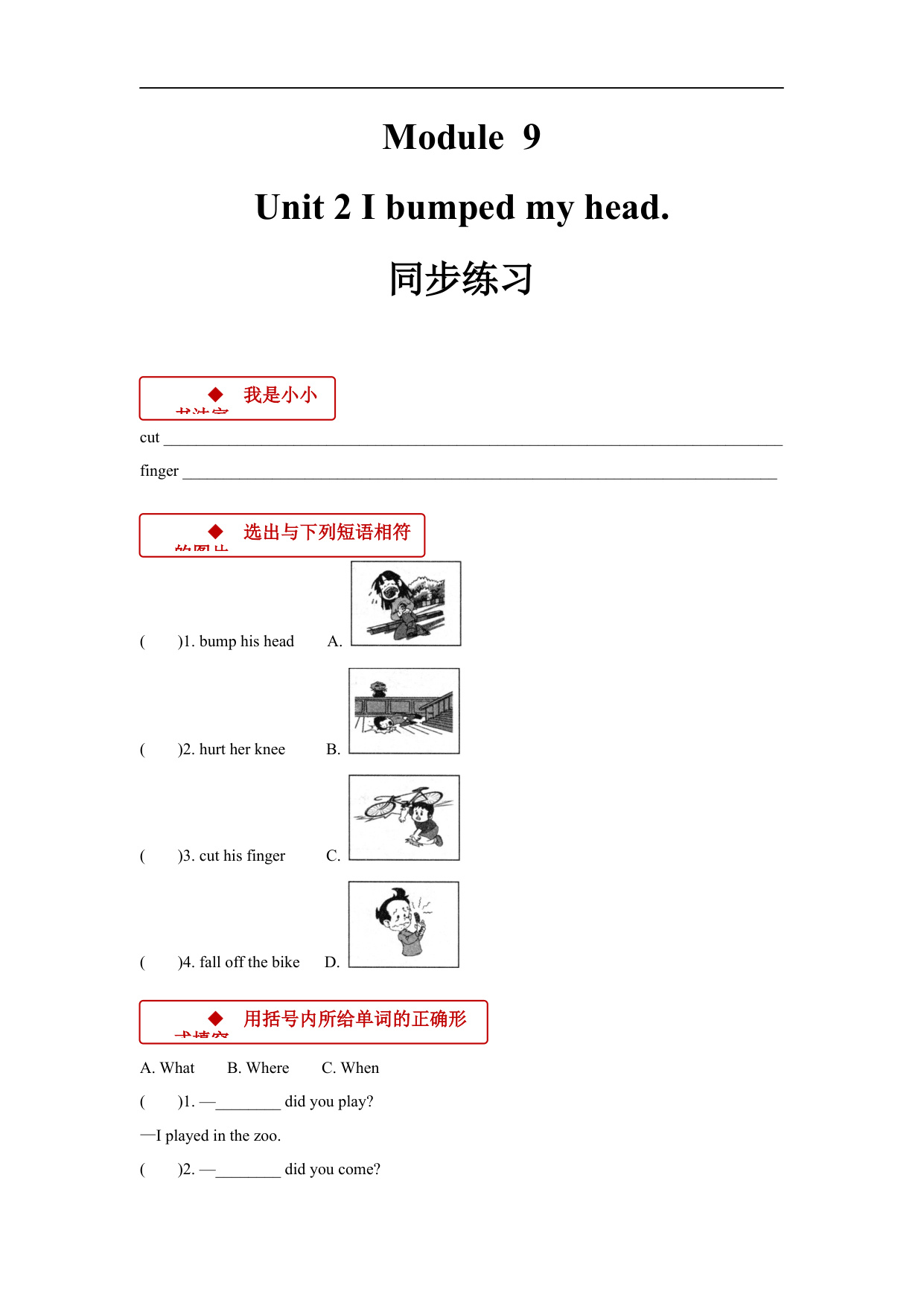 【同步练习】Module 9 Unit 2(外研英语一起点四上) 资料为Word格式,请下载后使用相应软件打开。