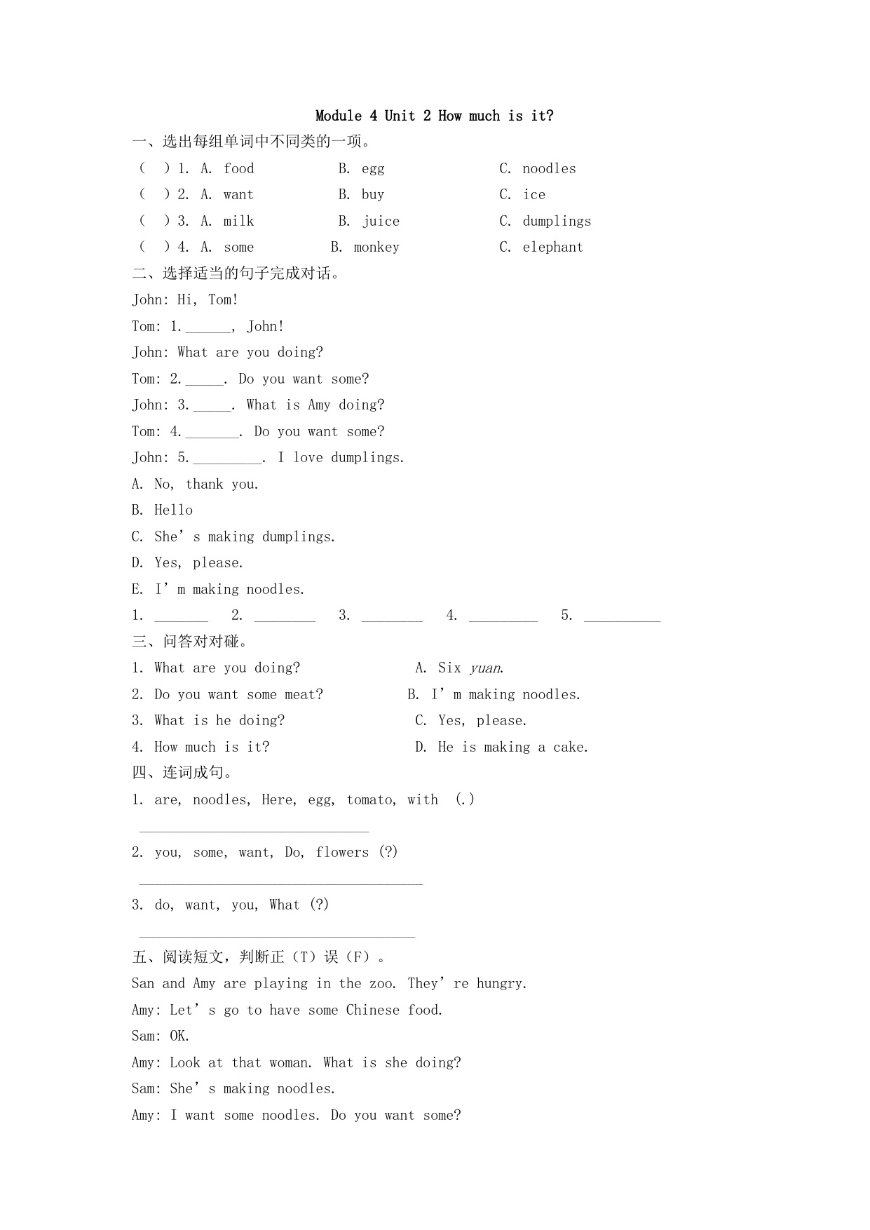 上一篇:外研三起点四上英语 Module 4 Unit 1课时练