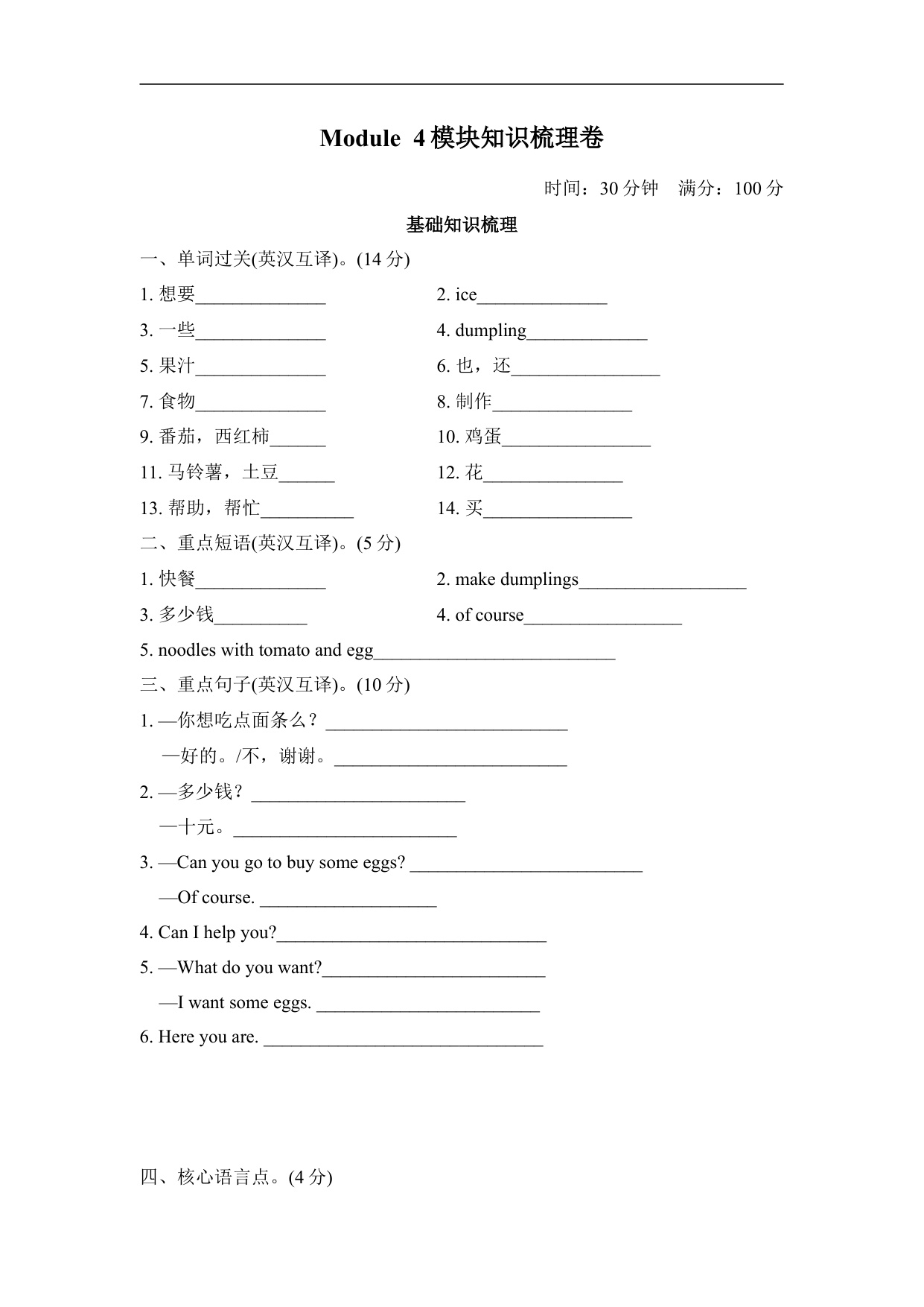 上一篇:外研版三起点四上英语Module 3模块知识梳理卷