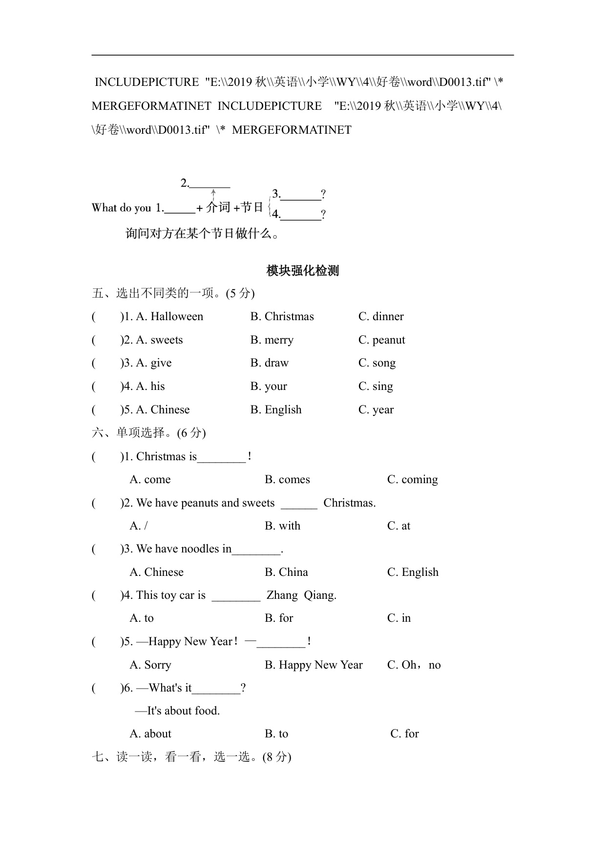 上一篇:外研版三起点四上英语Module 7模块知识梳理卷