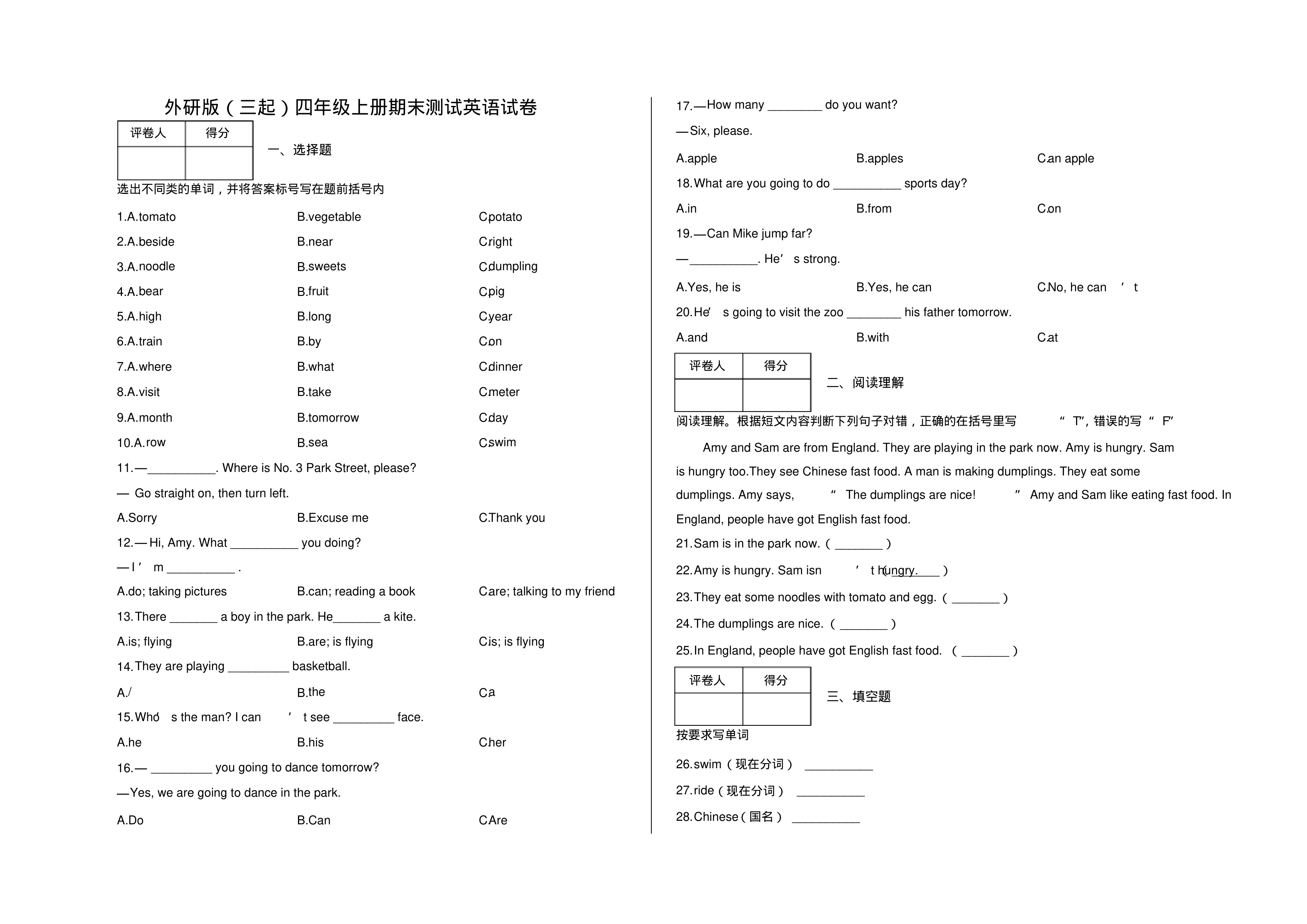 下一篇:外研版(三起)四年级英语上册期末测试卷(含答案)