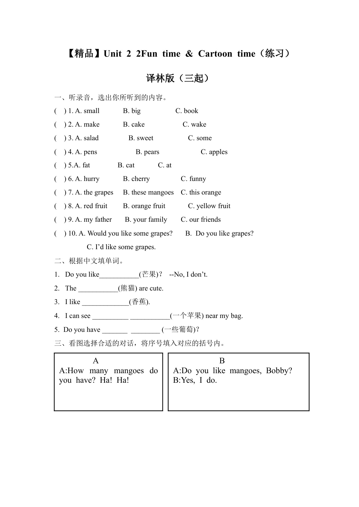 下一篇:四上英语课时练二套Unit 2 3Letter time, Song time, Checkout time Ticking time(练习及解析)-译林版(三起)-四年级英语上册