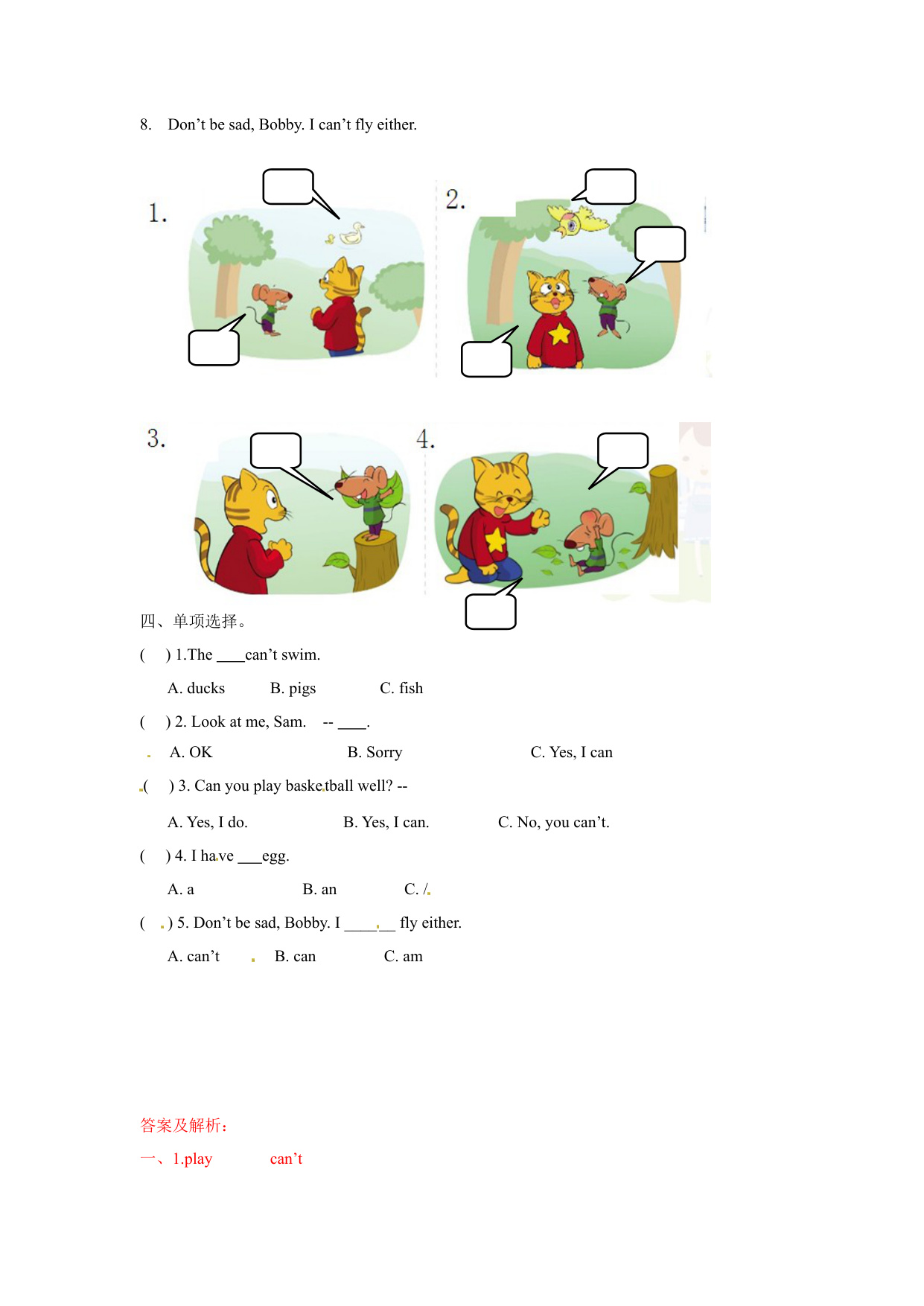 上一篇:四上英语课时练二套Unit 4 1-Story time(练习及解析)-译林版(三起)-四年级英语上册