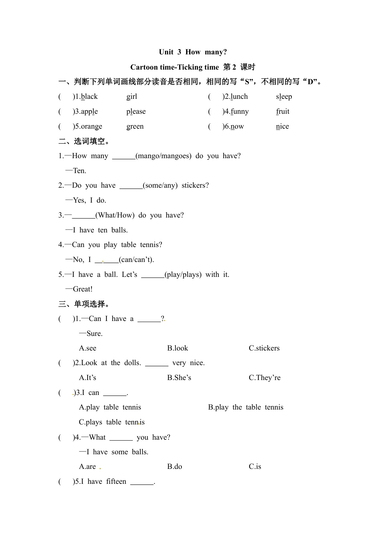 下一篇:四年级上册英语课时练-Unit 4 I can play basketball 课时1 Story time-Fun time 译林三起(含答案)