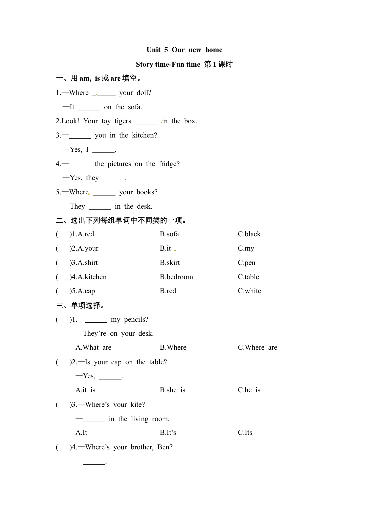 下一篇:四年级上册英语课时练-Unit 5 Our new home 课时2 Cartoon time-Ticking time 译林三起(含答案)