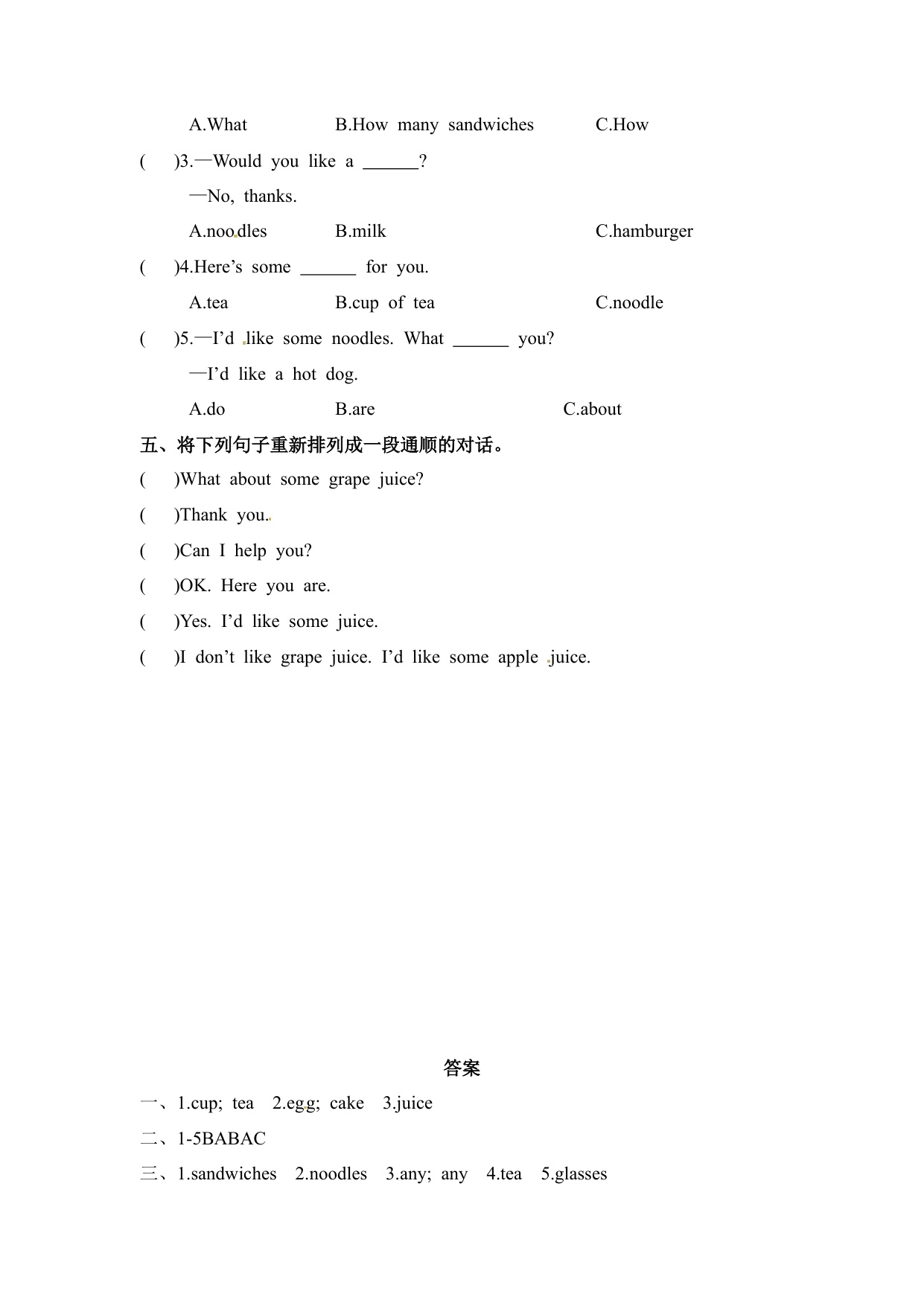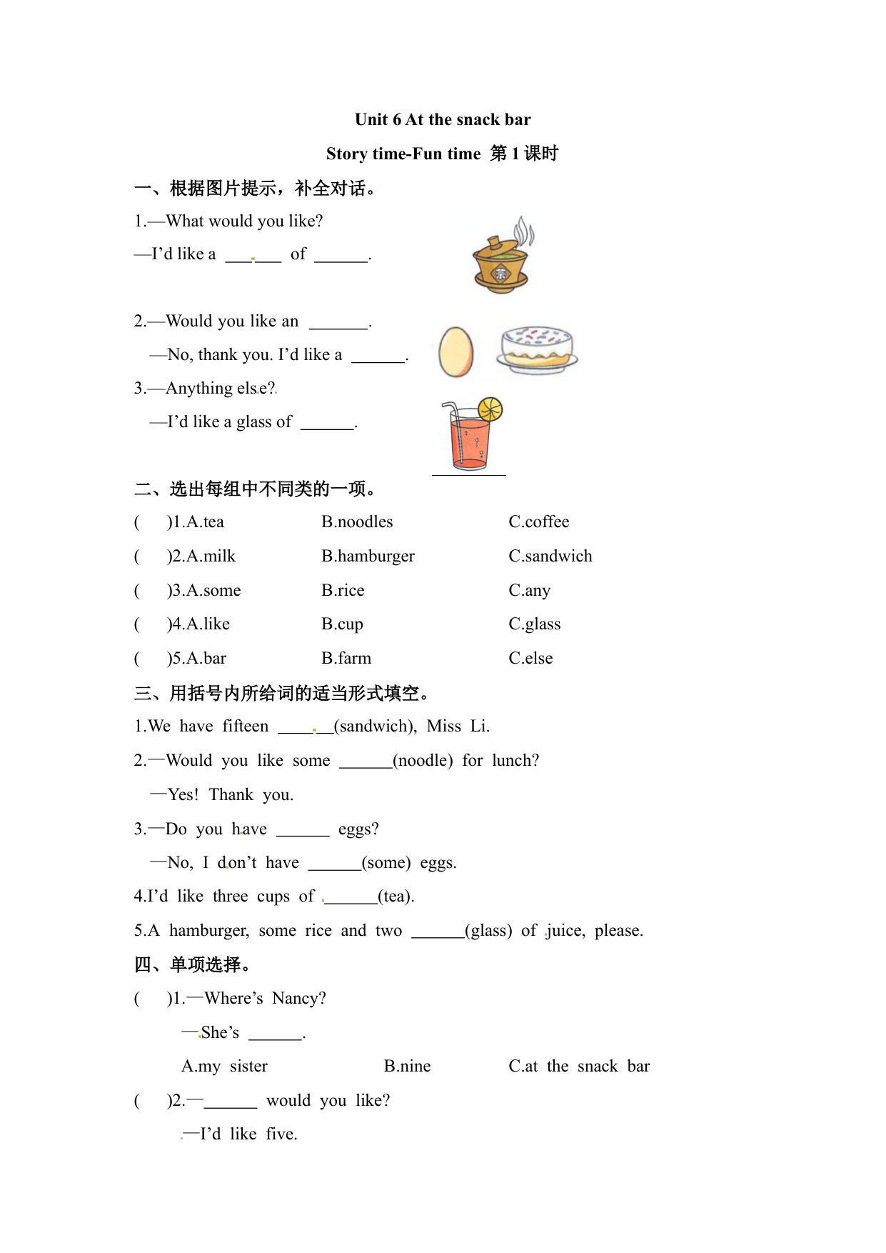 下一篇:四年级上册英语课时练-Unit 6 At the snack bar 课时2 Cartoon time-Ticking time 译林三起(含答案)