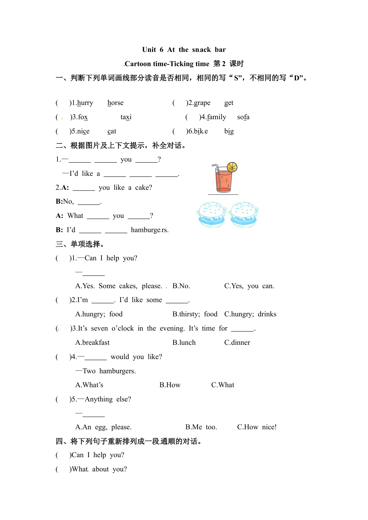 上一篇:四年级上册英语课时练-Unit 6 At the snack bar 课时1 Story time-Fun time 译林三起(含答案)