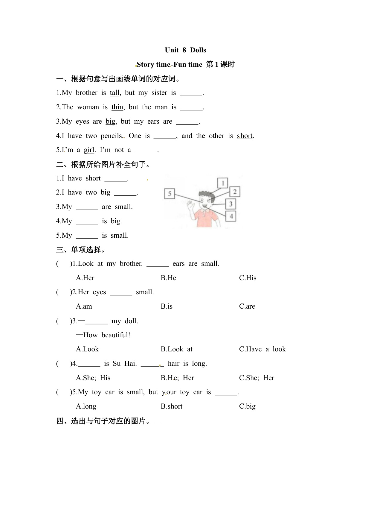 下一篇:四年级上册英语课时练-Unit 8 Dolls 课时2 Cartoon time-Ticking time 译林三起(含答案)