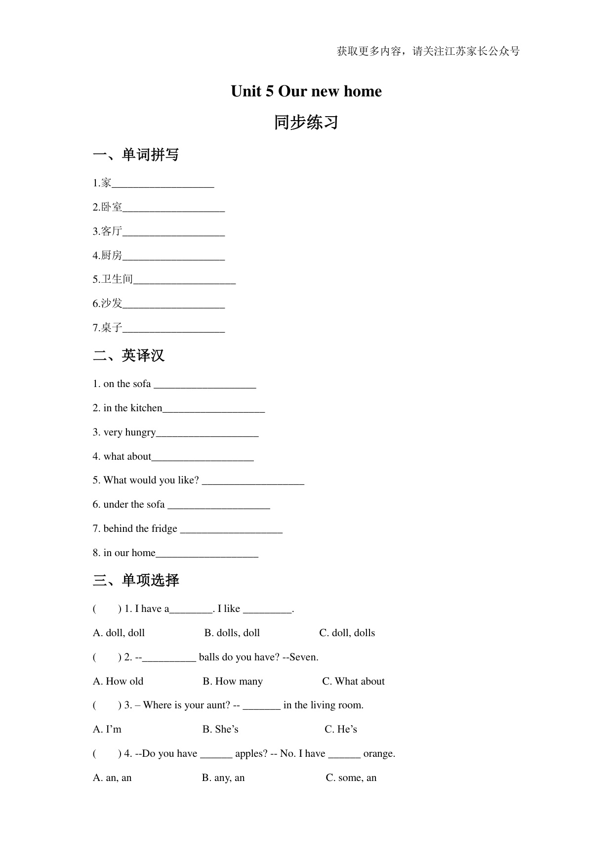 上一篇:苏教译林版小学英语四上 Unit 4 I can play basketball 同步练习A卷