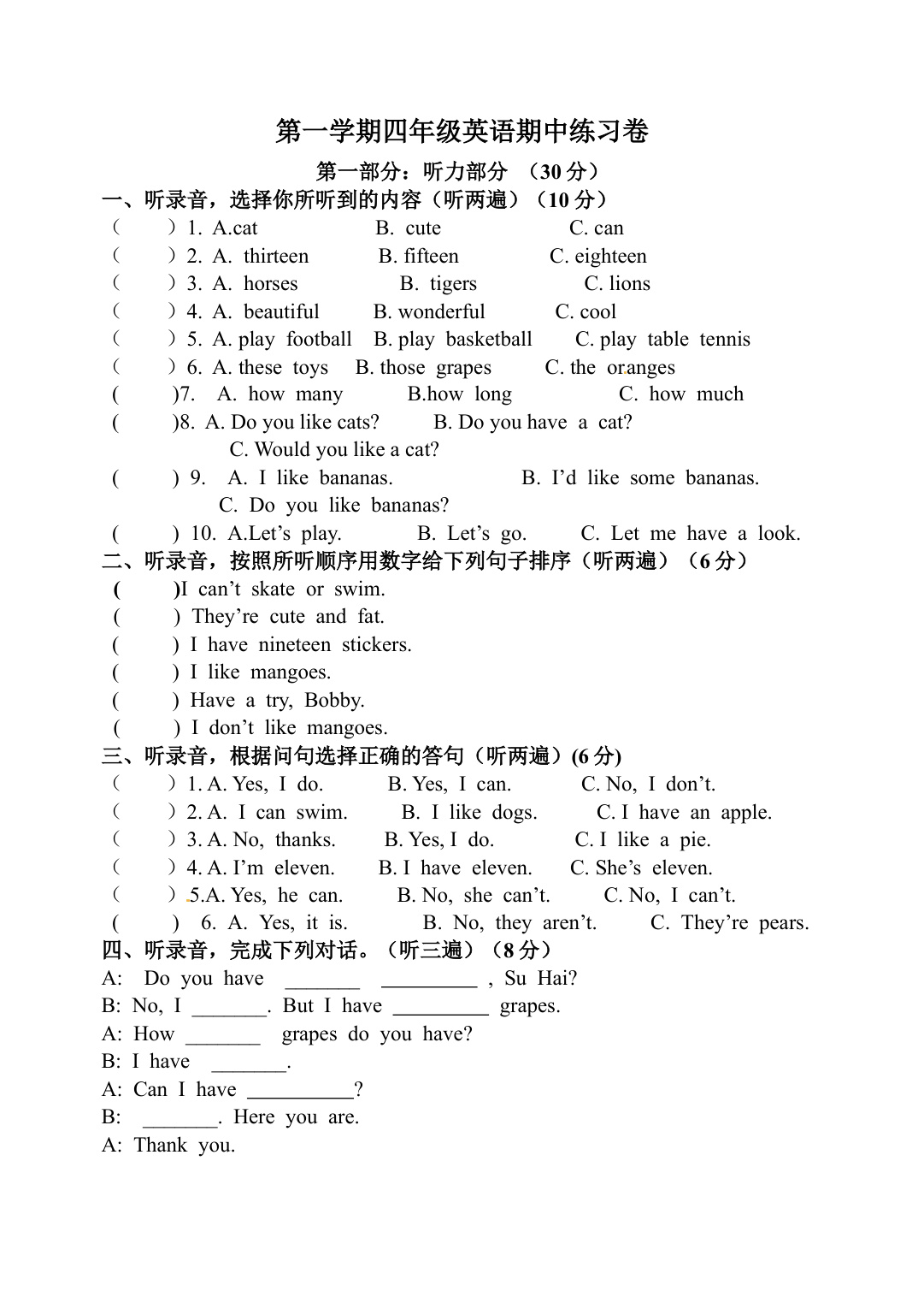 上一篇:译林版(三起)四年级上册期中测试卷(1)含听力