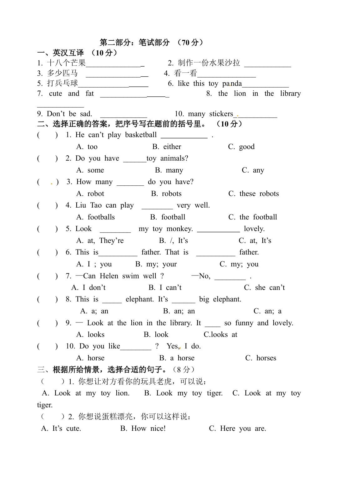 下一篇:译林版(三起)四年级上册期中测试卷(3)含听力