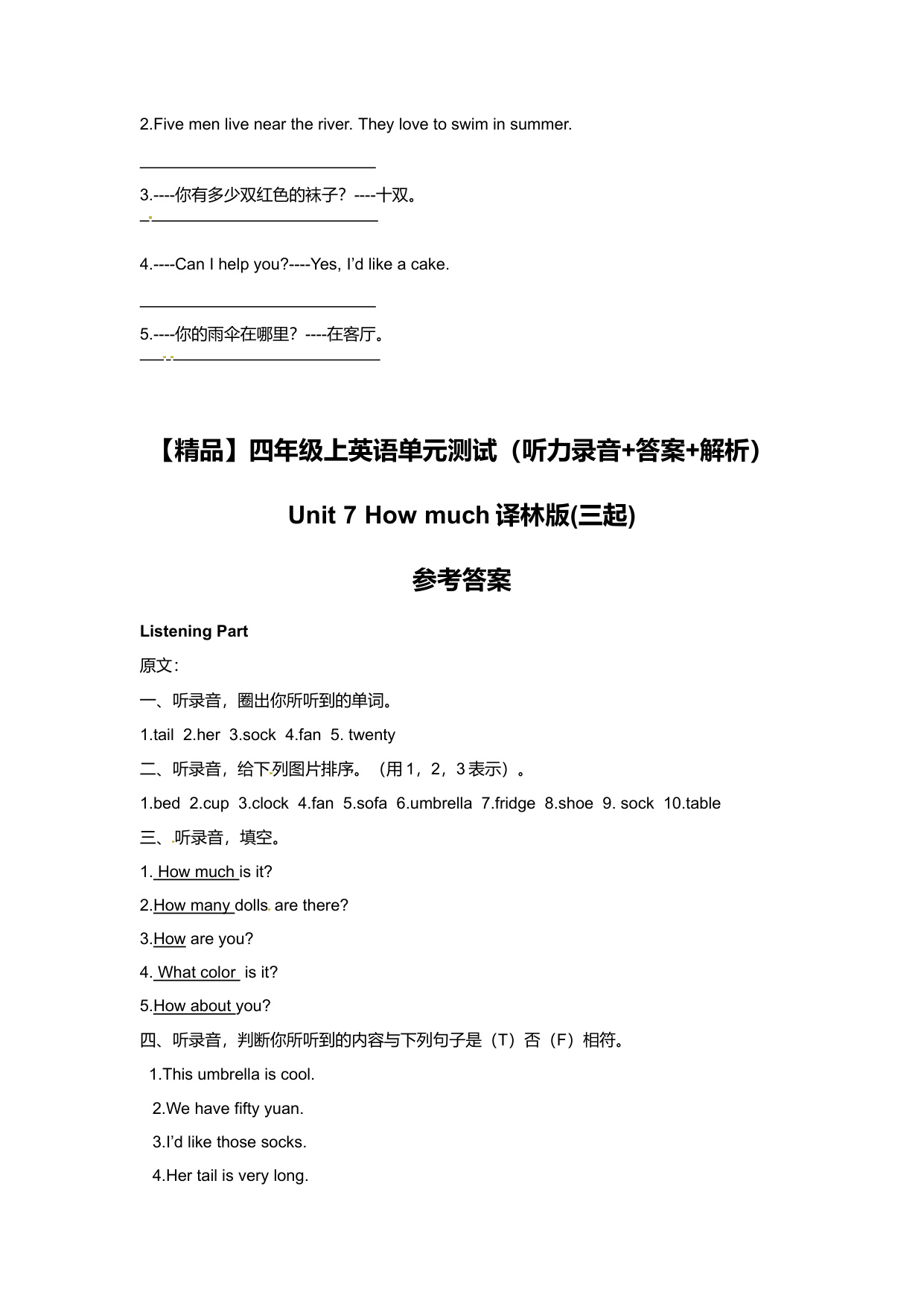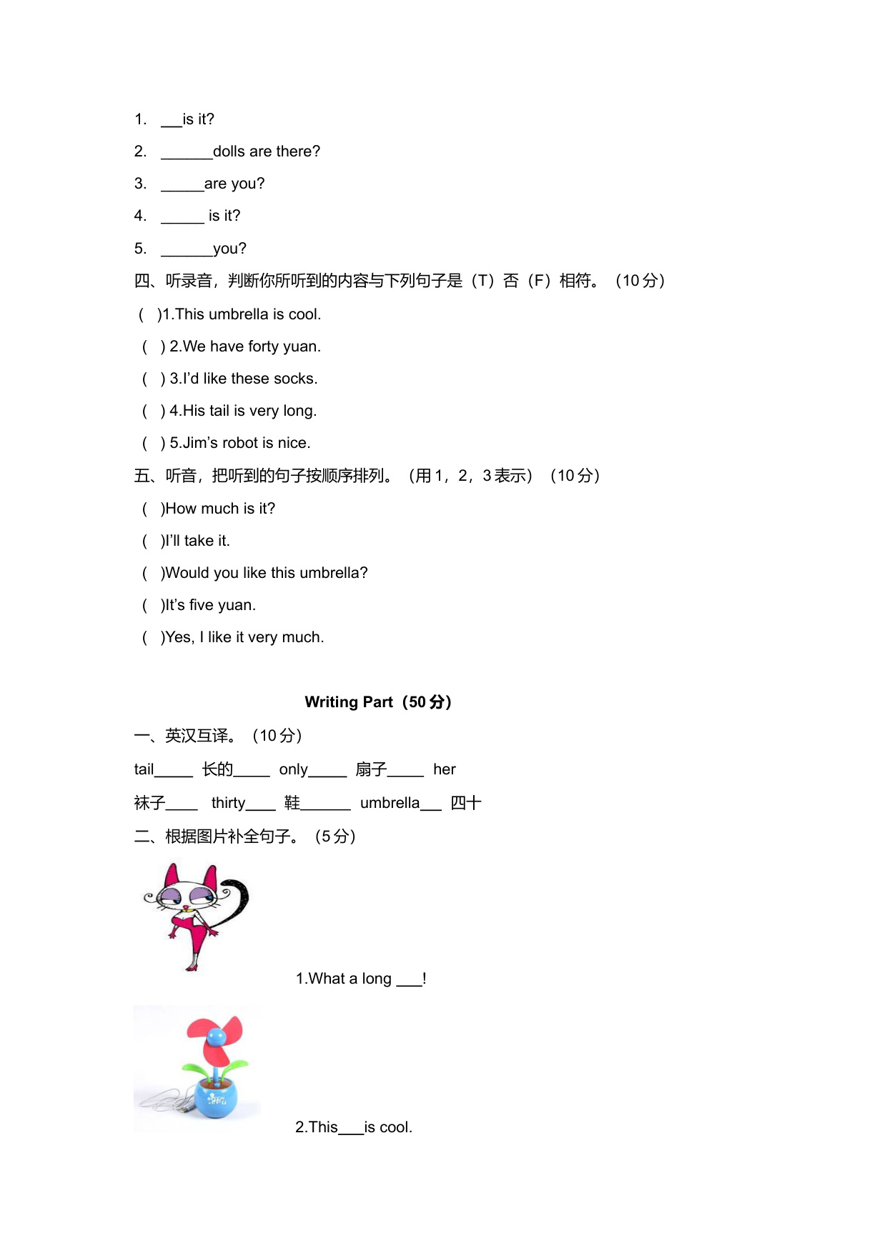 下一篇:【第1套】译林版(三起)四上Unit 8单元测试卷(含听力)