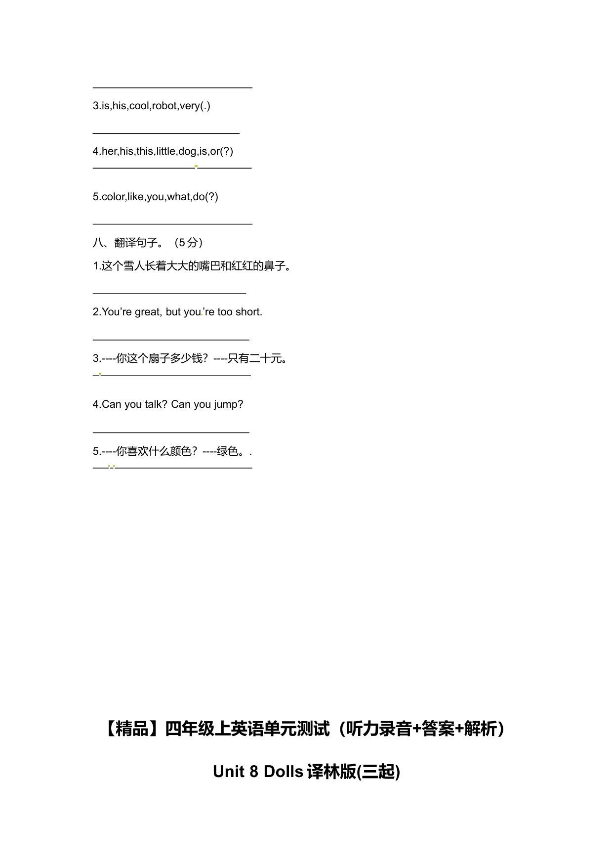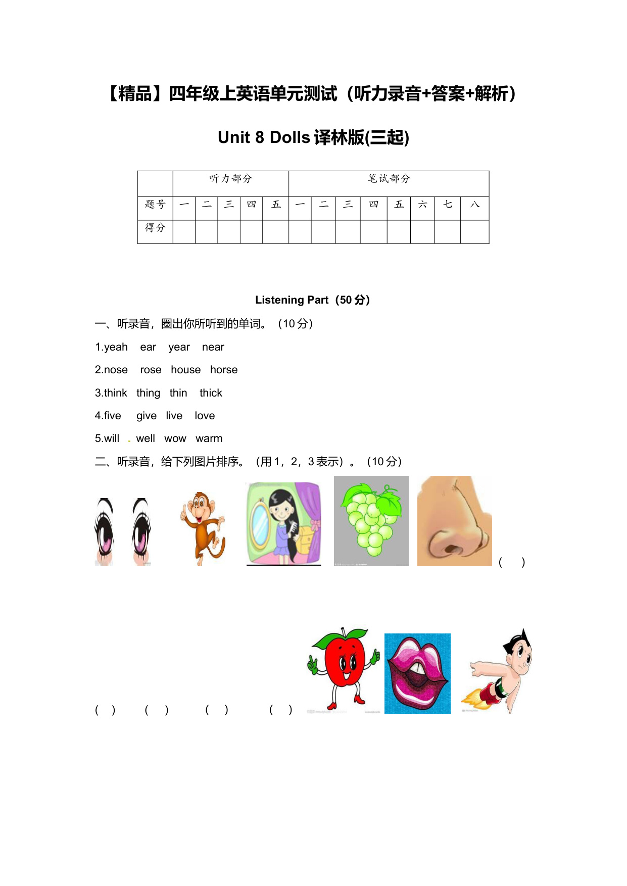 下一篇:【第2套】译林版(三起)四上Unit 1单元测试卷(含听力)