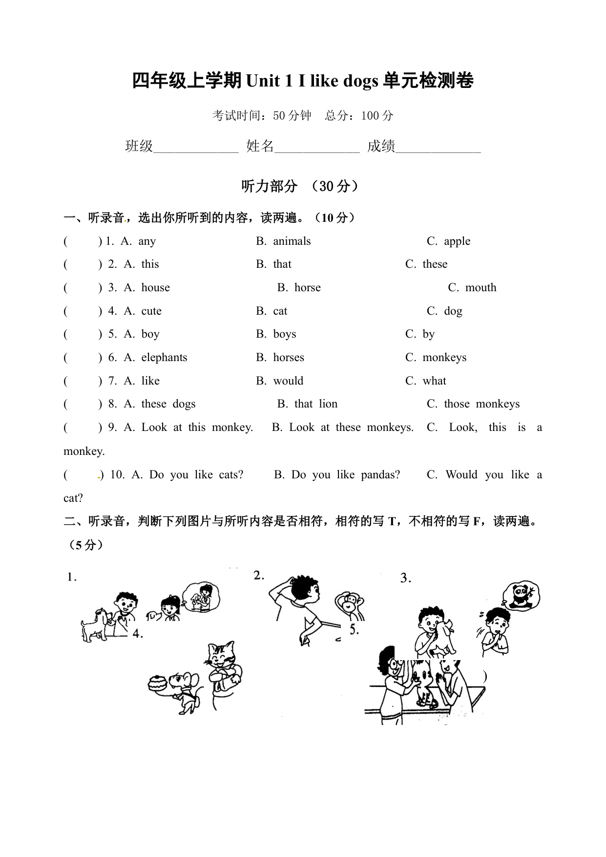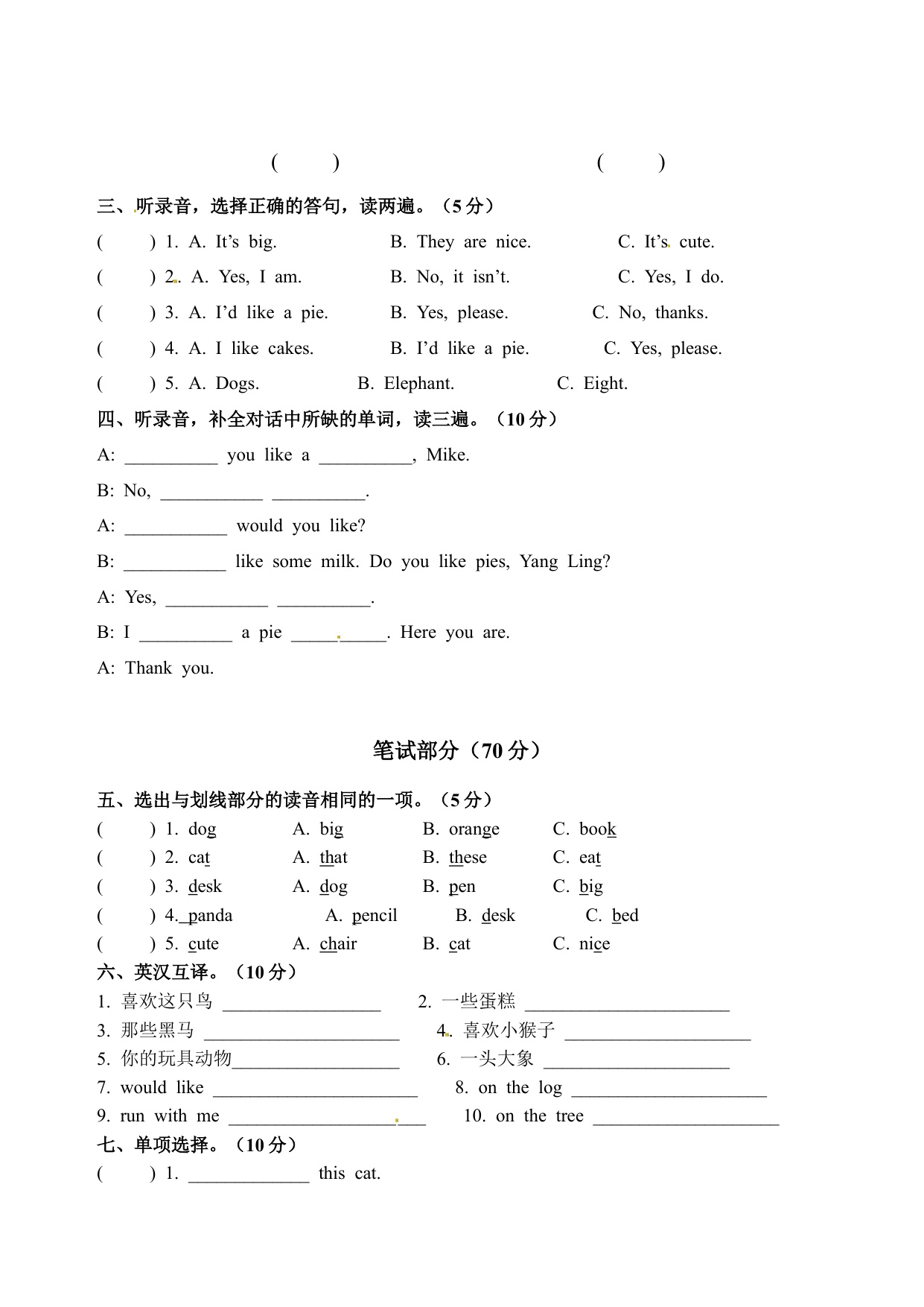 下一篇:【第2套】译林版(三起)四上Unit 2单元测试卷(含听力)