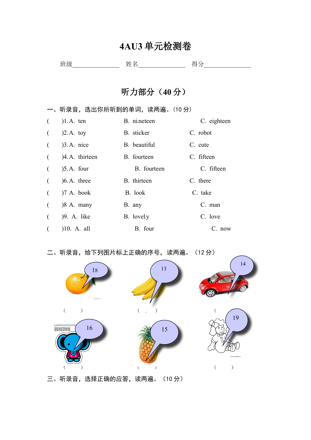 下一篇:【第2套】译林版(三起)四上Unit 4单元测试卷(含听力)