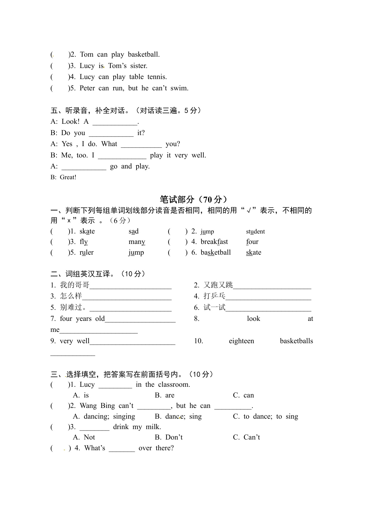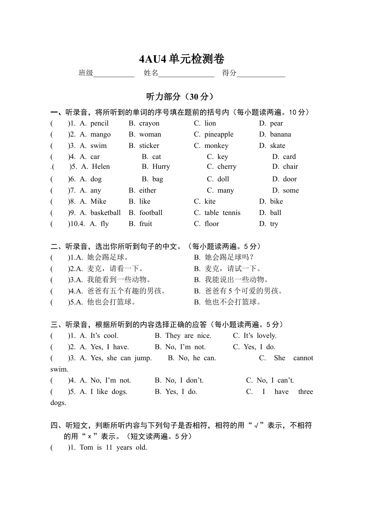 下一篇:【第2套】译林版(三起)四上Unit 5单元测试卷(含听力)
