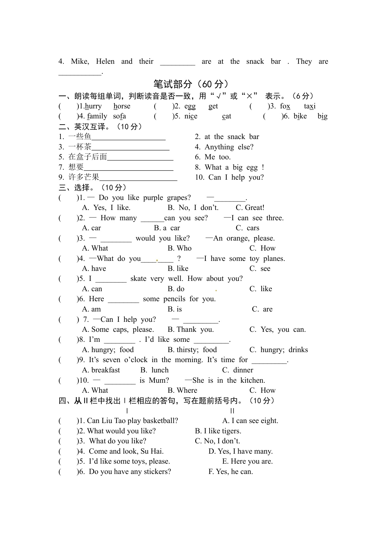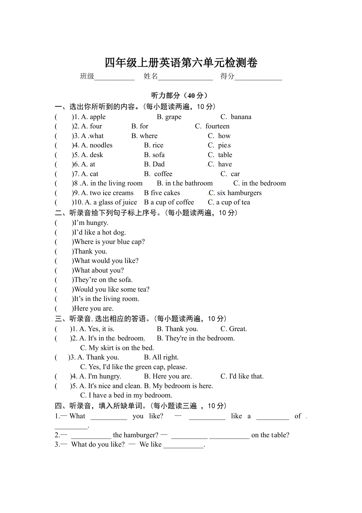 下一篇:【第2套】译林版(三起)四上Unit 7单元测试卷(含听力)