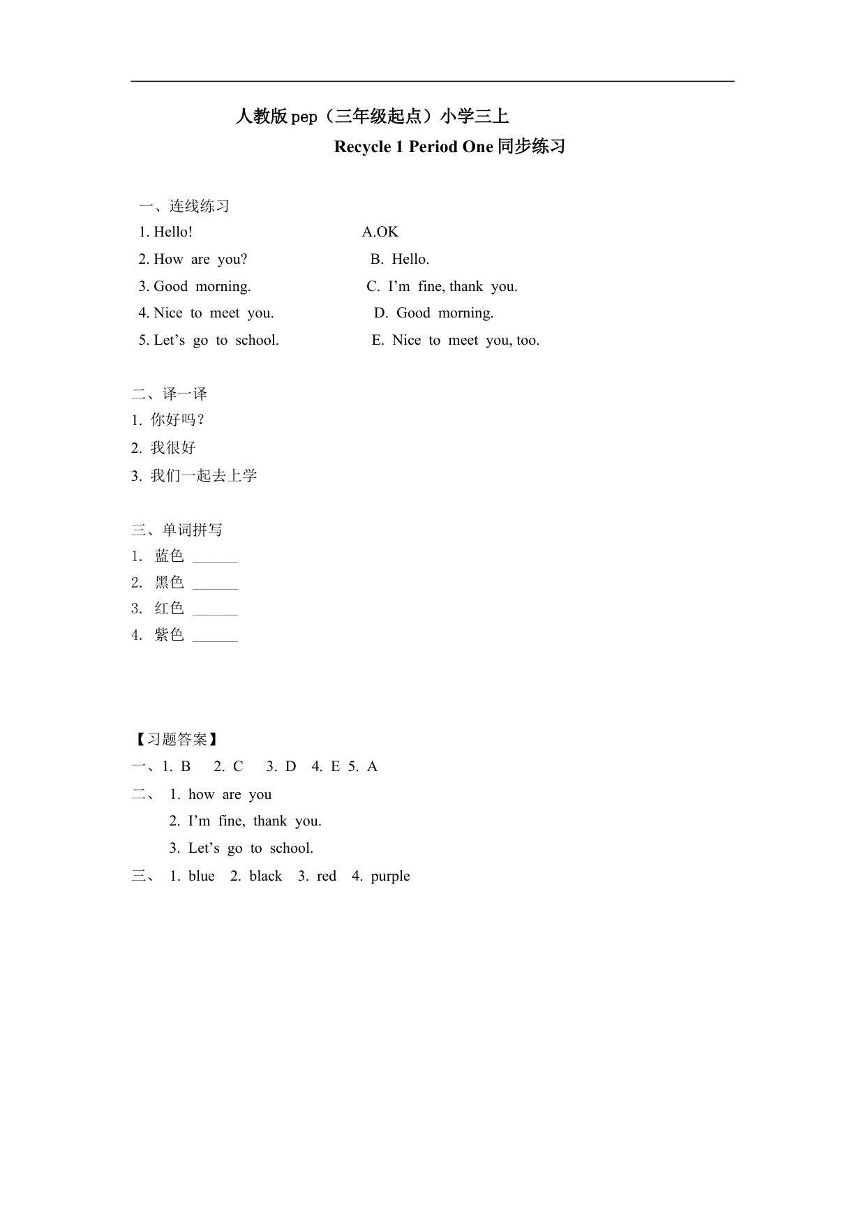 下一篇:人教版pep(三年级起点)小学三年级上册 Recycle 1 Period Three 同步练习含答案